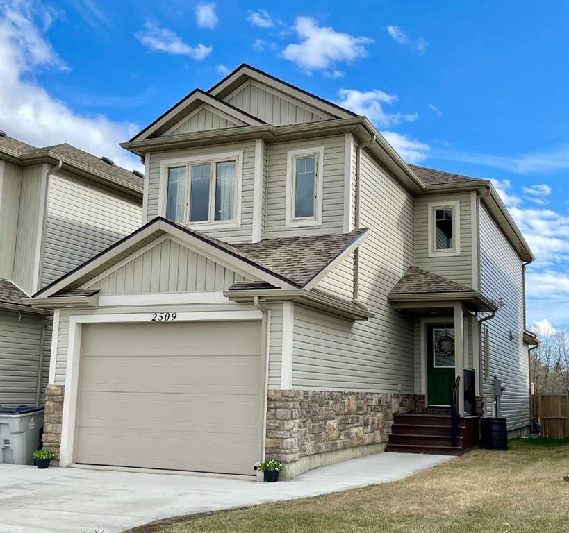 Don't miss out on this beautiful 2 storey semi-detached duplex and it's location! Featuring an open concept with vinyl plank flooring throughout the main floor, well designed kitchen with ample cabinets, walk in pantry, breakfast bar, stainless steel appliances and garburator. Finishing the main floor is a 2 pc bath, nice sized entrance with closet plus direct access to the attached heated garage through the mud room. Lots of great storage found here. On the 2nd floor you'll love the spacious master bedroom boasting a tray ceiling, big walk-in closet, 4 pc ensuite with a linen closet. There are 2 additional bedrooms with nice views and walk-in closets, 4 pc bath and a separate laundry room for extra storage. Continue on through the home and find the cozy finished basement with a gas fireplace and custom built in shelves as well as a 4 pc bath. This area is a perfect family room, kids play area and/or a great space for the guests to call their own. If you're looking for a great location, this is it. Right across the road from the future Elementary School, close to shopping, walking trails and backs onto a green space with trees. You'll be sure to enjoy the convenience of the heated attached garage, the fenced yard and the concrete drive. That's not all, this home also includes A/C, Central Vacuum and a Transferable New Home Warranty. It won't last long, book your showing today!