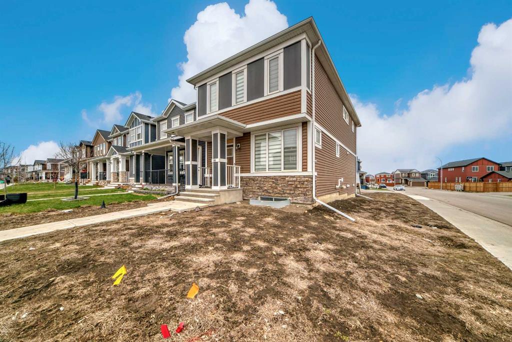 This two storey laned home on a corner lot with a SIDE ENTRANCE beautifully built in 2019 by Trico Homes in the community of Evanston. This two storey laned home features a main floor with 9ft ceilings, vinyl plank flooring throughout, kitchen with stainless steel appliance package, granite countertops, side wall pantry, and island with flush eating bar. Front living room and rear dining nook with a rear mudroom and access to a deck. The upper level features the large master bedroom with walk-in closet and 5pc ensuite including double sinks with granite counters and bath/shower combo. Two other bedrooms, full bathroom with granite counters, central bonus room and upper floor laundry. The basement is unfinished with roughed-in plumbing and 9ft ceilings awaiting your personal touches. Book you private viewing today with your favorite realtor.