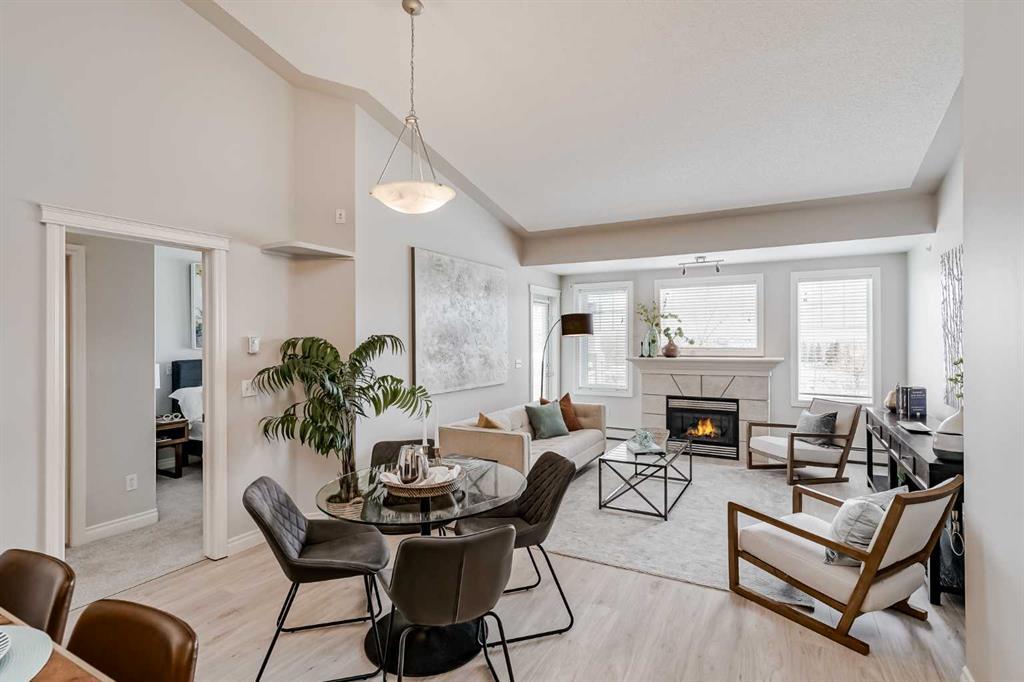 Welcome to urban luxury at its finest in The Waterford's remarkable PENTHOUSE SUITE! This stunning three-bedroom (or two bedroom + Den) residence offers an unparalleled lifestyle of convenience and sophistication. Situated mere moments away from the Repsol Centre, LRT, Stampede, and the vibrant Mission district, every urban amenity is at your fingertips, ensuring you'll never miss a beat of city living. Upon entering this exceptional property, be prepared to be captivated by the grandeur that awaits. Vaulted ceilings soaring to heights of up to 12 feet, creating an atmosphere of spaciousness and elegance. A fresh coat of paint throughout highlights the modernity of the design, while recently installed fashionable laminate flooring graces the living space and kitchen area, and new carpets throughout the 3 bedrooms providing a fresh and contemporary aesthetic that's both stylish and low-maintenance.