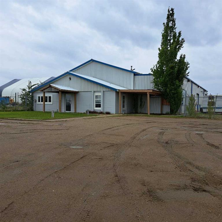 SK Highway 16 exposure. Industrial lease opportunity. Located on a corner lot in Wigfield Industrial Park on the East side of Lloydminster. 1.86 Acres with front, sides and rear of the building compacted gravel and fully fenced with 6' chain link & security gate. The property building is 7176 sq.ft which features 2656 sq.ft of main floor offices/reception, upper level lunch room plus storage. The shop/shipping receiving and mechanic repair rooms area is 4520 sq. ft with 3- 12'x14' OH Rear doors, shipping/receiving area with a powered steel left and a 10'x12' OH door, parts rooms and a room with a Hotsy boiler/pressure pump. 16' Ceiling height. 2 shop Radiant heaters. Situated on 1.86 Acres .Zoned I1.