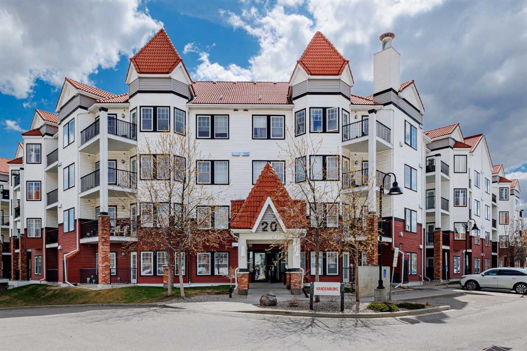 Welcome home to this bright and spacious corner unit featuring 2 bedrooms and 2 bathrooms in the highly sought-after Red Haus complex in Royal Oak! Great open concept throughout featuring 9’ high ceilings in this unit. The living and dining room offer gleaming hardwood flooring and leads to your balcony with a gas hookup. The spacious kitchen features large granite countertops with breakfast bar, newer appliances, and lots of cabinets. The spacious primary bedroom has a large walk-thru closet into the 3 piece ensuite. A second large bedroom has a walk-thru closet and a 4 piece bath with cheater door to the living area. There is convenient in-suite laundry. This unit has a titled heated underground parking space and a titled storage locker. This building also features great amenities including a fitness room, a party room with a pool table and kitchen, and beautifully landscaped green space throughout the complex. Excellent location that is just steps to Royal Oak Shopping Center, an abundance of dining options, public transportation, and playgrounds. Minutes to C-Train and YMCA. Easy access to Stoney Trail. Don’t miss your opportunity to call this beautiful unit home!