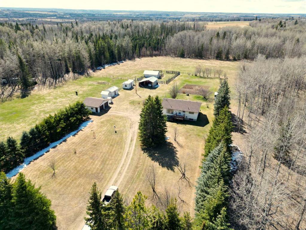 RARE FIND: 73.49 ACRE HOBBY FARM ONLY 4KM FROM BRETON. This beautiful property with 1274 sq. ft. is perfect for someone dreaming of owning their own little hobby farm. The bi-level home, built in 1981, has two bedrooms, a four pce bath, large living room and kitchen/dining area with south windows providing ample sun on the main floor. There are two more bedrooms, a spacious family room and 3 pce bath downstairs. Property is fenced, and has approximately 33 acres open with a dugout on the back 30 acre pasture, for watering livestock. The spacious spruce tree lined yard site includes a double detached garage with concrete floor, several small storage sheds, a 24' x 28' open front shed with power and an older barn. There are numerous fruit trees and a large garden area to make this hobby farm complete. Ideally located about 30 minutes from Drayton Valley and 45 minutes from Leduc and within 1/2 hour of three lakes and several golf courses, this could be the property you've been waiting for.