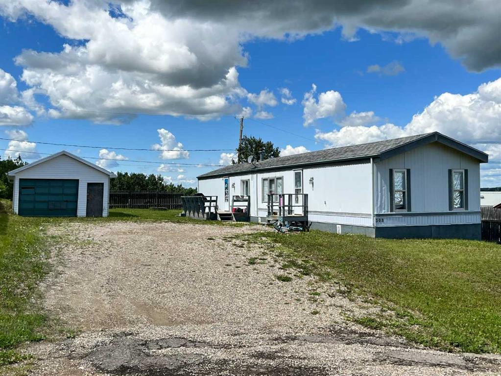 This 1248 square foot home is a Great investment property or starter home. Open kitchen and dining area, a large living room, two bedrooms and a main bathroom at one end of this mobile, the master with en-suite at the other and a 16' x 24' heated garage. All appliances come with this home, new flooring has been installed early 2022. Enjoy the view and the huge lot situated in the village of Paradise Hill. Book your showing today.