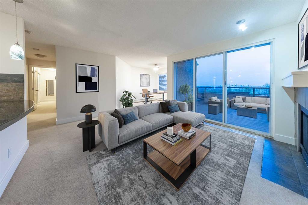 The News at Broadcast Hill is a gem in the Calgary real estate market. Originally, the complex was built to house the athletes and staff during the 1988 Olympics hosted in Calgary. Now, it's a well-run community of condominiums overlooking the City of Calgary in an ideal location. The true selling feature of this home is the view. It has an unobstructed view of downtown and also to the north across the river towards the University of Calgary. You can see the Calgary skyline from both bedrooms, while doing the dishes, from the living/dining area and from the outstanding deck. The deck, indeed, links the outside to the inside. You can enjoy your morning coffee while watching the sunrise over the city or a glass of wine and a BBQ while watching the sunset. Not to mention at night when downtown shines. The home features two bedrooms, one ensuite bathroom, and another main bath. The living space has an open floor plan that is functional and can be set up however you prefer. There is a wood-burning fireplace for cozy winter evenings by the fire. The kitchen is upgraded, featuring a large island with room for a seating area, granite counters, and stainless steel appliances. The home's condo fees include heat, water, and sewer, so you will have a lower utility bill, only paying for electricity. With the large bright windows, you can spend much of the day with the lights off. Ideally located opposite Edworthy Park and just a 15+ minute commute to downtown, this condominium complex is close to top-rated schools, parks, playgrounds, convenient bus routes, and shopping centers. Easy access to key transport routes like Sarcee and Bow Trail, plus the opening of the new Stoney Trail, makes traveling a breeze. Being this close to downtown at this price point is impossible in other major Canadian cities. The complex also features an amenity area that includes a party room, a kitchen/bar, an indoor swimming pool, a hot tub, a fitness center, and a tennis court, offering more than just a condo to live in. See this home; it will surely stand out, especially the view.