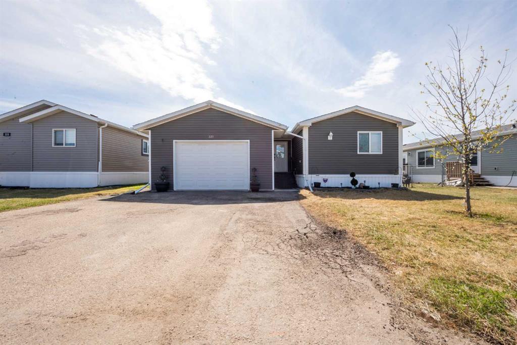 1266 sqft manufactured home with 3 bedrooms, 2 bathrooms and an attached 26x20 heated garage on a rented lot in Silverpointe. The kitchen features lots of counter space, dark cupboards, and stylish counter tops. All the bedrooms are a good size, and the primary suite features a large ensuite and his and her closets. Big fully fenced backyard with a deck and concrete pad for a hot tub. This Home also backs on to an easement for added privacy. The Silverpointe is located just outside the city of Grande Prairie close to the airport. There is great views, walking path, basketball court, ball diamond, skating arena in the winter and a pond for summertime fishing. Home has been recently painted, the skirting has been entirely redone and new insulated tape was added last winter. Lot fees include water, garbage and snow removal.