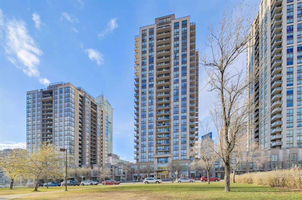 Experience the vibrancy and convenience of true downtown lifestyle living in the upscale Nova building. Located on the 15th floor, this spacious 1 bed plus den unit offers unobstructed, panoramic city & rocky mountain views! Enjoy sunny South exposure & an oversized balcony. Modern open plan, immaculately maintained and updated. Upgraded kitchen with quartz countertops, deluxe stainless steel appliances incl Fisher & Paykel fridge (recently replaced), built-in oven, & gas cooktop. Generous primary bedroom sharing the same incredible views, with walk-through closet and full 4 piece ensuite. Private den/office makes an ideal home office or studio! Quiet & comfortable with concrete construction & central A/C. New washer & dryer. Very well maintained and managed complex with condo fees below average. Building amenities include a guest suite, fitness center, central courtyard, heated underground resident & visitor parking, & event room! Just steps to all amenities, nightlife, the downtown core, & transit!
