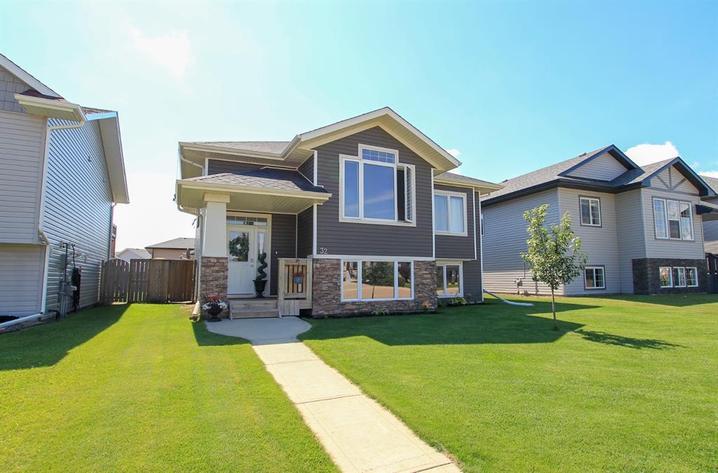 3 BDRM, 2 BATH BI LEVEL ~ OVERSIZED DOUBLE DETACHED GARAGE ~ FULLY FENCED SOUTH WEST FACING BACKYARD ~ Open concept main floor layout complimented by hardwood floors, vaulted ceilings and large windows offers a feeling of spaciousness ~ The kitchen offers an abundance of alder wood cabinets with black walnut stain & soft close fixtures, mosaic tile backsplash, under cabinet lighting, quartz counter tops, undermount sink with a window above, large island loaded with pots and pan drawers plus an eating bar, wall pantry and opens to the dining space with garden door access to the deck ~ The spacious master can easily accommodate a king bed and multiple pieces of furniture, has a generous size walk in closet with built in organizers and 3PC ensuite with quartz counter, tile backsplash and transom window ~ 2 additional main floor bedrooms are both a good size and are conveniently located across from the 4PC main bath ~ The lower level offers 9ft ceilings, in floor heat roughed in, bathroom plumbing roughed in, and laundry could easily accommodate at least 2 bedrooms and a large family room plus storage ~ The backyard is landscaped with a row of well established trees offering privacy, enclosed storage under the deck and is fully fenced with back alley access ~ The oversized double detached garage is heated and has 2 overhead doors ~ Located close to park, playground and walking path.