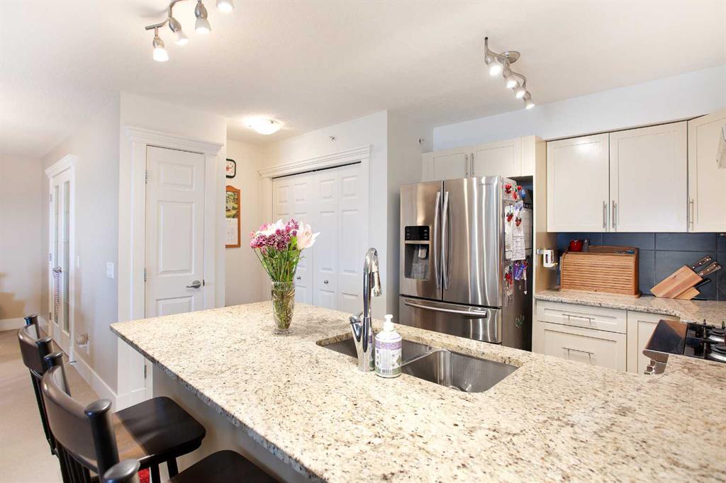 Stunning location with breathtaking views! This top-floor unit is the largest in the complex, offering over 1,200 sq ft of quiet, comfortable living space. Nestled in the sought-after community of Rocky Ridge, this 2-bedroom, 2-bathroom condo boasts an open and inviting layout. The spacious dining area and sunlit living room are perfect for entertaining. The large kitchen is a chef's dream, featuring stainless steel appliances, a gas stove, and sleek granite countertops. The expansive primary bedroom includes ample closet space and a luxurious 3-piece ensuite. Additional highlights include in-suite laundry, generous storage, a second bedroom, a 4-piece bath, and an office/den with a custom Murphy bed. The private balcony, equipped with a gas line for BBQs, is the ideal spot to soak in the spectacular views of Canada Olympic Park. The unit also comes with secure heated underground parking, offering two side-by-side assigned stalls and extra storage. This well-maintained, pet-friendly complex features amenities such as an exercise room, a theatre room, and a large social room. With easy access to the mountains, downtown, the YMCA, shopping, and more, this gem is not to be missed!
