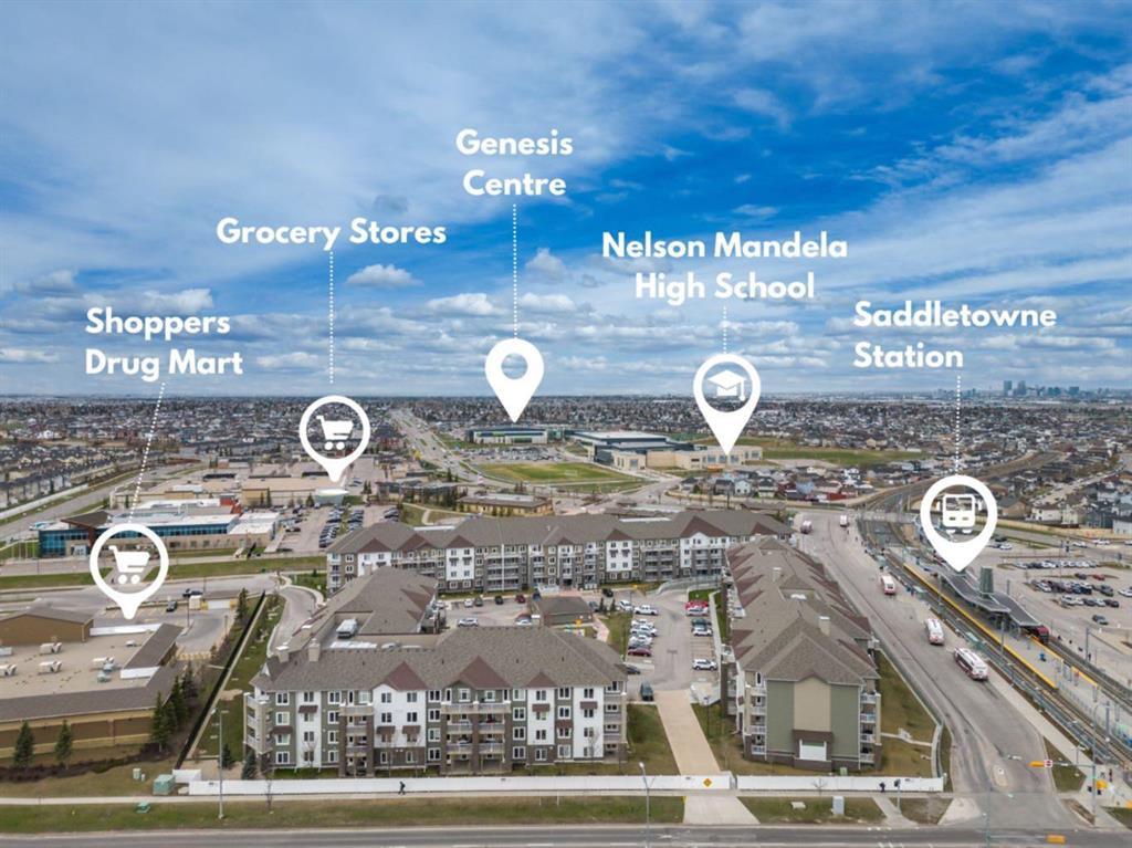 LOCATION! LOCATION! LOCATION! Ditch the cramped condo life for expansive living in this STUNNING 2-bedroom, 2-bathroom 935 SqFt unit in the heart of Saddletowne Circle! Bask in tons of natural light with BRIGHT west-facing windows and a private balcony, perfect for enjoying your morning coffee or summer soirées. This MODERN unit boasts tonnes of UPGRADES including a spacious open floor plan with gleaming HARDWOOD floors throughout (no carpets here!), a GORGEOUS kitchen featuring quartz countertops and stainless steel appliances, and ample storage to keep everything organized. Craving convenience? LOW CONDO FEES? 1 MINUTE WALK to Saddletowne Station? You got it! This incredible location puts you steps away from the Genesis Centre, shopping, schools, parks, gyms and the Saddletowne LRT station (1 minute walk!). Plus, beat the Calgary winters with a titled OVERSIZED underground parking stall. Don't miss the immersive 3D VIRTUAL OPEN HOUSE TOUR and see for yourself why this home is truly special.