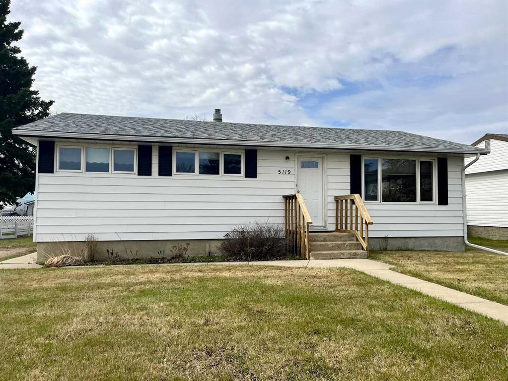 Welcome to this well maintained 940 sq ft bungalow nestled in the peaceful community of Viking. This delightful 1959 home offers the timeless appeal of a traditional bungalow layout, with spacious rooms and ample natural light throughout.. With 3 bedrooms, 1 bathroom, and an unfinished basement ready for your personal touch, this property presents an excellent opportunity for customization and expansion. A country oak kitchen with fresh white appliances is ideal for cooking those family dinners- with a separate dining space that is flexible for extension if needed. Outside, the large lot boasts ample parking spaces as well as room for a garden, trampoline or whatever your needs might be! The single detached garage is perfect for the hobbyist or to keep the car clean on those blustery winter nights. Highlights of this home include: main floor laundry that can be put back downstairs; a fully re-done basement floor and exterior wall framing with spray foam insulation.