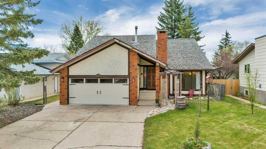 Welcome to 60 Brookes Crescent, Red Deer! This unique family home is situated on a quiet crescent facing a lovely green space. The main floor boasts a family room with patio doors leading to the backyard and a large deck. There is also a cozy living room featuring cedar vaulted ceilings and a stunning stone-faced wood-burning fireplace. The upper level includes three bedrooms, with the sizeable primary suite offering dual closets and a 3-piece ensuite. Just off the primary suite, there is a private office and a storage area directly above the garage. The basement features a family room, a bedroom with a 3-piece ensuite, and a large work area within the utility room. Additionally, this home is close to all major shopping outlets and restaurants, providing easy access to all your daily needs.