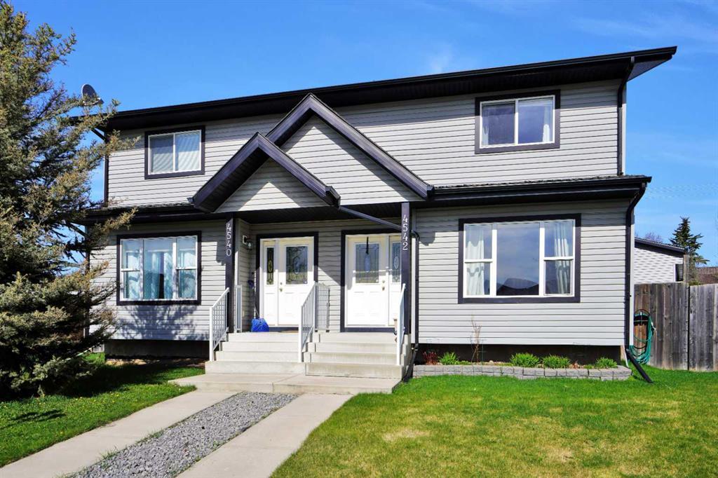 Ideal starter home or revenue property located on pie shaped lot close to amenities. This 2-storey half duplex offers a bright and open floor plan. The foyer leads you to a spacious living room. The kitchen with corner pantry is open to the dining area that accesses the rear deck. A 2 pce bathroom completes the main level. The upper level hosts a full bathroom and 3 bedrooms including a large master bedroom with walk-in closet. The developed basement offers a family/rec room, a 4th bedroom and a second full bathroom. The good size and fenced backyard has an upgraded large deck, a detached garage (23' at the front, 24' on one side, 23' at the back, 18' on other side) and a gravel pad for additional parking. Great property made affordable!