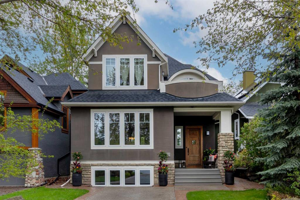 Beautiful custom-built 4 bedroom family home located directly across the street from a park and the Bow River on popular Bow Crescent. Great curb appeal with a front porch that welcomes you to this extremely well cared for home. The spacious and open main level features a living room with large windows facing the park, a gas fireplace with stone surround and built-in cherry cabinetry. The sizeable dining room has place for a large dining table plus additional space for extra furniture. The kitchen features cherry cabinetry including a pantry wall, a Thermador 6-burner gas range, Bosch dishwasher and fridge (both new in 2023), slate countertops and island with breakfast bar seating. The kitchen leads to the family room, perfect for a TV room or large office, and facing all the greenery of the private yard. The mudroom with a walk-in closet/pantry storage, powder room and the generous foyer complete this main level. Hardwood flooring throughout the main and upper level, 9 ft ceilings on the main floor, vaulted ceilings throughout the upper level and 8' 8" ceilings in the basement. On the upper level you will find 3 very spacious bedrooms, all with vaulted ceilings. The primary bedroom has beautiful windows looking out at the park and river, a private balcony, generous walk-in closet and ensuite with dual vanities, soaker tub, and tiled shower. A full bathroom and the laundry room with brand new washer/dryer in 2024, sink and cabinetry complete this upper level. The fully finished basement has a bright and well laid out family room with large windows and built-in cabinets and bookshelves. The family room leads to an office area with built-in desks, the 4th bedroom, full bathroom, storage room, and utility room with plenty of storage space. Beautiful yard with mature trees, stamped concrete and exposed aggregate patios and walkways, a double detached garage, plus a parking pad (stamped concrete/exposed aggregate) at the front of the house for extra off-street parking. Great location right on the Bow River bike path, and close to Bowmont Park, Shouldice Park, and all the nearby amenities of Bowness!