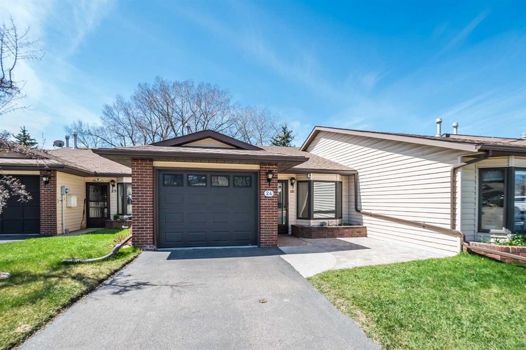 Nestled in a vibrant 55+ community, this charming townhouse offers a tranquil retreat with stunning views of the adjacent green space and walking trails. Vinyl plank flooring through-out this unit with no carpet. The spacious kitchen, featuring a sunshine ceiling and lots of counter space is perfect for preparing meals and entertaining guests. A large dining area with patio doors leading to your west-facing back yard with fruit trees facing a green space. This unit is 1 bedroom, 1 bathroom and convenience of main floor laundry. The front also boasts a front patio, perfect for enjoying your morning coffee or chatting with neighbors.. A single attached garage ensures your vehicle is secure and easily accessible. No condo fees here. The community does pay a yearly fee for snow and grass cutting. Located close to the Golden Circle, Red Deer Recreation Centre, Pidherney Park, and shopping, this townhouse offers both a serene lifestyle and easy access to amenities. Don't miss the opportunity to call this delightful townhouse your home!