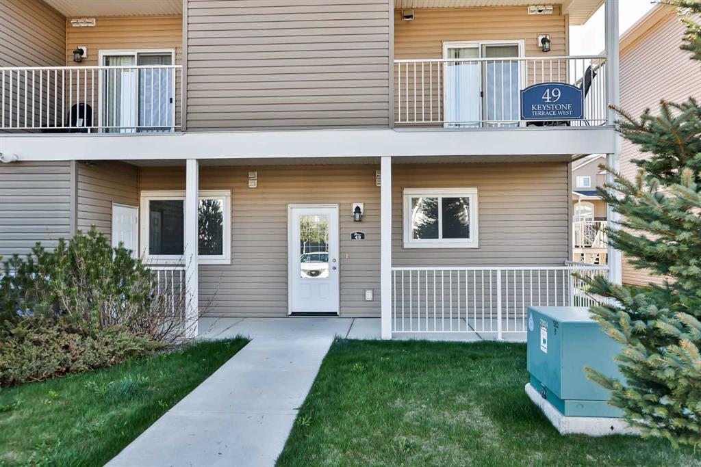 This home has been meticulously maintained, freshly painted, and is nestled on the ground level as a coveted end unit. This splendid home boasts three bedrooms, two modern bathrooms, and an inviting open concept layout that seamlessly blends the kitchen, dining area, and living room into a harmonious living space. Delight in the warmth of the cozy corner electric fireplace, the elegance of granite countertops, and the convenience of two expansive patios that capture the sun's embrace both morning and evening. Recent enhancements include stylish new lighting, meticulous paint touch-ups, and the installation of a brand-new hot water tank, ensuring comfort and efficiency. Accompanied by an external storage unit and two dedicated parking spaces, this residence is practical and convenient Positioned in an enviable location, Copperwood Villas offers proximity to the YMCA, ATB Center, an array of shopping destinations, reputable schools, serene ponds, and lush parks. Seize this exceptional opportunity to claim the cleanest condo in the complex as your own. A lifestyle of convenience awaits at Copperwood Villas. Don't let this gem slip away!