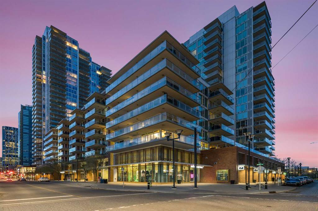 Step into this stunning end-unit boasting an enormous south and east-facing patio! Nestled in a private setting, the living room features floor-to-ceiling windows that offer a picturesque view of the patio and lush greenery. The open-concept design seamlessly integrates the living room with the kitchen, creating a fabulous space for living and entertaining. Experience a sleek, modern kitchen's perfect blend of functionality and style. This kitchen is fully equipped with stainless steel appliances, quartz countertops, and an island with a breakfast bar. A spacious primary bedroom features double mirrored closets and a spa-like ensuite with dual sinks, a large soaker tub, separate shower, and heated floors. The second bedroom is situated on the other side of the unit for added privacy. It would also be an ideal space for a home office. There is an additional 3 piece bathroom for your guests and a lovely front entry to greet your guests. The unit comes with in-suite laundry, a built-in desk off the kitchen, a large front hall closet, an additional storage closet, multi-zoned central air conditioning, assigned heated parking, and an extra storage locker. A bonus is the location of this home within the building. Just a short walk down the hall are the building's two gyms, steam room, sauna, party room and access to the common exterior outdoor living spaces. There is a natural gas BBQ hookup on the patio and ample room for a large patio set. Enjoy hosting parties this summer on this amazing patio! This well-managed building offers concierge service, secure bike storage, and secure indoor guest parking. The condo is conveniently located on the connecting floor between buildings, providing multi-access entrances. Come and experience living in the trendy East Village. Grab a coffee at one of the award-winning cafes and stroll down the River into Bridgeland or Inglewood. The East Village offers multiple shops and restaurants and easy access to downtown. A perfect place for you to call home!