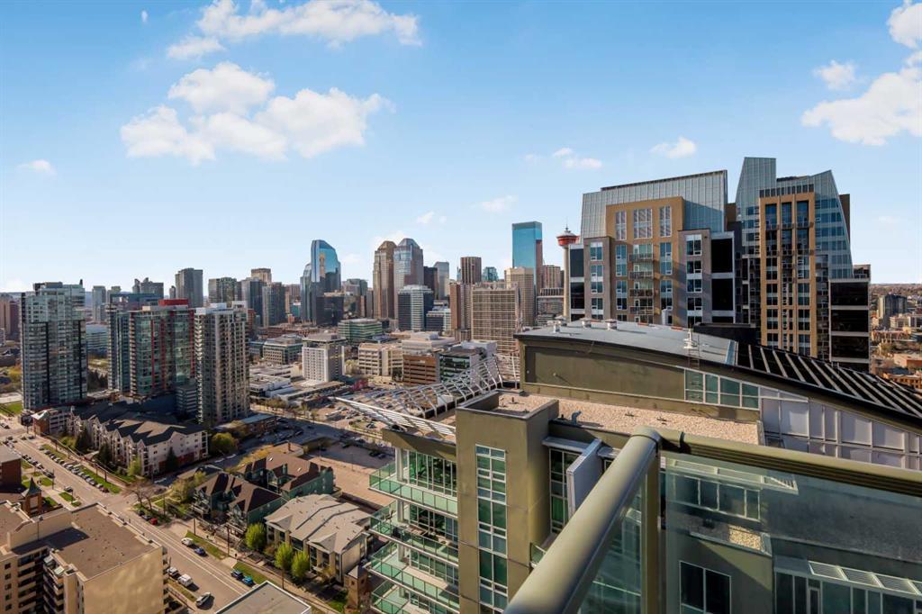 Here's your chance to get the currently only available 1 bedroom unit that boasts over 720 square feet with AMAZING city views for sale in the Vetro building! Welcome to your urban oasis in the heart of downtown Calgary, Alberta! This tastefully renovated 1-bedroom, 1-bathroom apartment offers an unparalleled blend of modern comfort and breathtaking views of both the city skyline and the majestic Rocky Mountains. Perched high atop a coveted highrise, this residence boasts large windows that flood the space with natural light, creating an inviting ambiance throughout. Step inside to discover a thoughtfully designed layout, where every detail has been carefully considered to maximize both style and functionality. The open-concept living area seamlessly transitions into a sleek kitchen with ample cabinet space. Whether you're whipping up a gourmet meal or simply enjoying your morning coffee, this kitchen is sure to inspire your inner chef. The bedroom offers a serene retreat from the hustle and bustle of city life, with ample closet space and windows framing stunning views of Calgary's skyline. Through the walkthrough closet, you have the bathroom which is strategically placed for ease of access from your room as well as the main living area. Additional highlights of this exceptional residence include hardwood-like laminate flooring, in-unit laundry facilities, and a private balcony where you can unwind and take in the panoramic vistas stretching from downtown Calgary to the distant peaks of the Rockies. Residents of this building enjoy access to a host of amenities, including a fitness center, hot tub, party room, and secure underground parking. With its prime location in the heart of downtown, you'll find yourself just steps away from world-class dining, shopping, entertainment, and public transportation options. Don't miss your chance to experience urban living at its finest. Schedule your private viewing today and discover the unparalleled beauty and convenience of this stunning apartment.