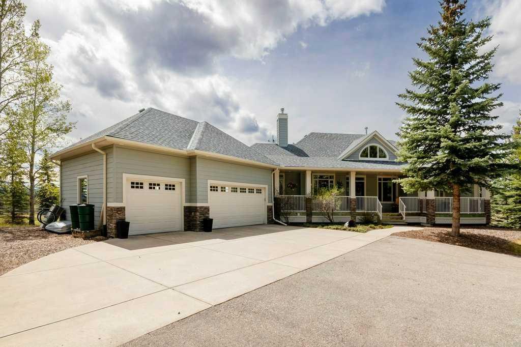 Look no further if you have been waiting for a well built, spacious, fully developed walkout bungalow on a private parcel of land with mountain views in a great location! Nestled in groupings of mature trees, next to an Environmental Reserve and containing a lovely small pond, the setting is peaceful, private and relaxing. About 7 minutes west of the Hamlet of Priddis, minutes to the Priddis Green Golf Club and 15 minutes to the SW ring road, this property provides a pristine country living setting but still close to SW Calgary and its amenities. The beautiful home has over 3,500 sq. ft. of developed space on 2 floors with towering 17 ft. vaulted ceilings in the great room, open to a gourmet kitchen with breakfast nook and separate dining room. The main floor also contains a spacious primary bedroom with large ensuite and walk in closet. There is also a small den next to the primary with double sided fireplace facing the great room. The Merbau hardwood floors on the main are known for their beauty, hardness, and stability. The home has in-floor heating in the lower level, primary ensuite and garage. Some other features include 9 ft. ceilings, Hunter Douglas window coverings, cement board siding, access to lower level from garage and RO. The lower level has 2 spacious bedrooms, 4-piece bath, wet bar, large open recreation/family room, big utility room and storage areas including cold room. You can walk up to the garage from the lower level. The back of the home has a massive 45 ft. deck, partially screened to enjoy relaxing times outside or for hosting guests as well as there being a spacious porch across the front. There is a small pond with fountain and rock features at the southwest area of the land. The landscaping is low maintenance with expansive mulched areas.