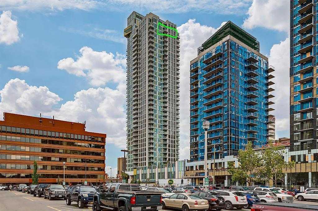 PRICE REDUCED BY 10K FOR QUICK SALE. Incredibly rare opportunity to own the ONLY one bedroom + den unit (w/ one titled parking stall & storage locker) on the PENTHOUSE floor in the new sleek & sophisticated MARK on 10th, located in the heart of downtown Calgary! You will enjoy warmth of the light that floods the unit, the stylish/modern design featuring an open concept layout, stunning unobstructed west facing views of the city/mountains & high-end finishing's throughout. The kitchen features German made cabinets, stainless-steel Liebherr and AEG appliance package and quartz counter-tops w/ gas cooktop. To top it all off, beautiful upgrades have been added including: custom island w/ built-in storage & quartz counter-top, built-in entertainment unit, built-in shelving and desk, designer chandeliers and custom window coverings. With private stairwell access from the 33rd floor to an array of luxurious amenities including a private yoga studio, gym, lounge w/ media center, pool table, bar, sauna/steam room, rooftop outdoor kitchen w/ fire-pit, & sundeck with oversized hot tub, this building has it all. 1 underground heating parking stall in the most convenient P1 level (first stall with extra high ceilings)