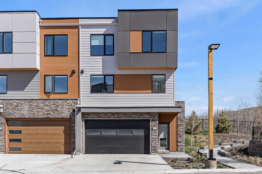 Welcome to the Village at Trinity Hills—an exclusive urban townhome community in Southwest Calgary's Paskapoo Slopes. This stunning 3-storey end unit boasts 1950 sq ft of living space, featuring 3 bedrooms plus a den and 2.5 baths, with modern luxury finishes throughout. On the main floor, you'll find a private entry leading to a double garage enters onto the bright family room. The gourmet kitchen is a highlight, with a large island, upgraded stainless Kitchen Aid appliances (including a gas range), shaker cabinets, quartz countertops, a spacious Kohler work station sink with touch faucet. The kitchen flows into the spacious dinning room and the living room that over looks a private patio with a gas BBQ outlet, overlooking a 160-acre treed reserve. This level also includes a powder room. Upstairs, discover three bedrooms, including a king-sized master with a 4pc ensuite (featuring double sinks and a beautifully tiled shower, in floor heating) and a large walk-in closet with custom built-ins. The laundry is conveniently located near the upgraded main bath. Trinity Hills offers 160 acres of green space with 17 kilometers of trails and breathtaking views of COP/WinSport. Nearby amenities include Save-On-Foods, PetSmart, Superstore, Farmers Market, and Cobbs Bread. With easy access to downtown (15 minutes) and the Rocky Mountains, this is the perfect blend of nature and urban living.