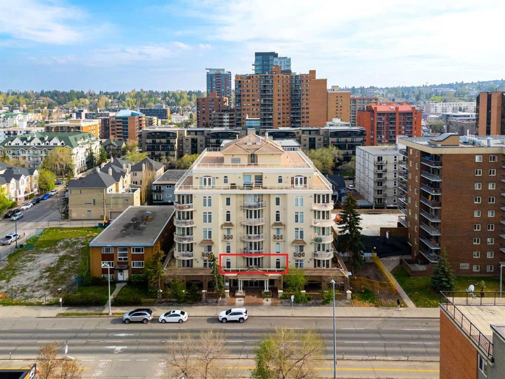 Walk in the door, next to the foyer and you will find a large kitchen with Maple Cabinets, Granite Counters, a center Island, and stainless steel appliances including a GAS stove. The open concept apartment features a large living/dining area with plenty of space for both living room furniture and a dining table. This living room is accented with huge windows that let in loads of natural light and a french patio door grants access to a sprawling private north facing balcony overlooking Calgary's vibrant 12th Avenue. The center living room separates the 2 bedrooms. The primary bedroom has a 4 piece ensuite bathroom and there is a 3 piece main bath adjacent to a second bedroom. Ensuite laundry completes this unit. The unit also comes with One Titled, Heated Underground Parking Stall. A bike storage on the lobby level adds to your comfort and security.This wonderful condo just steps away from the Connaught Dog Park and the trendy 17TH AVE, with nightlife, dining, pubs, diverse shops, and just minutes to cafes, CO-OP Grocery Store, Community Natural Foods, Best of Kin Social, Monki Breakfast & Bistro, Dollarama, Sunalta LRT, many other unique shopping experiences, as well as access to the river and downtown core, are just a quick walk or a short bike ride away. The designated Calgary school area includes Western Canada High School. Don't miss out the opportunity to make it yours! Book your viewings today!