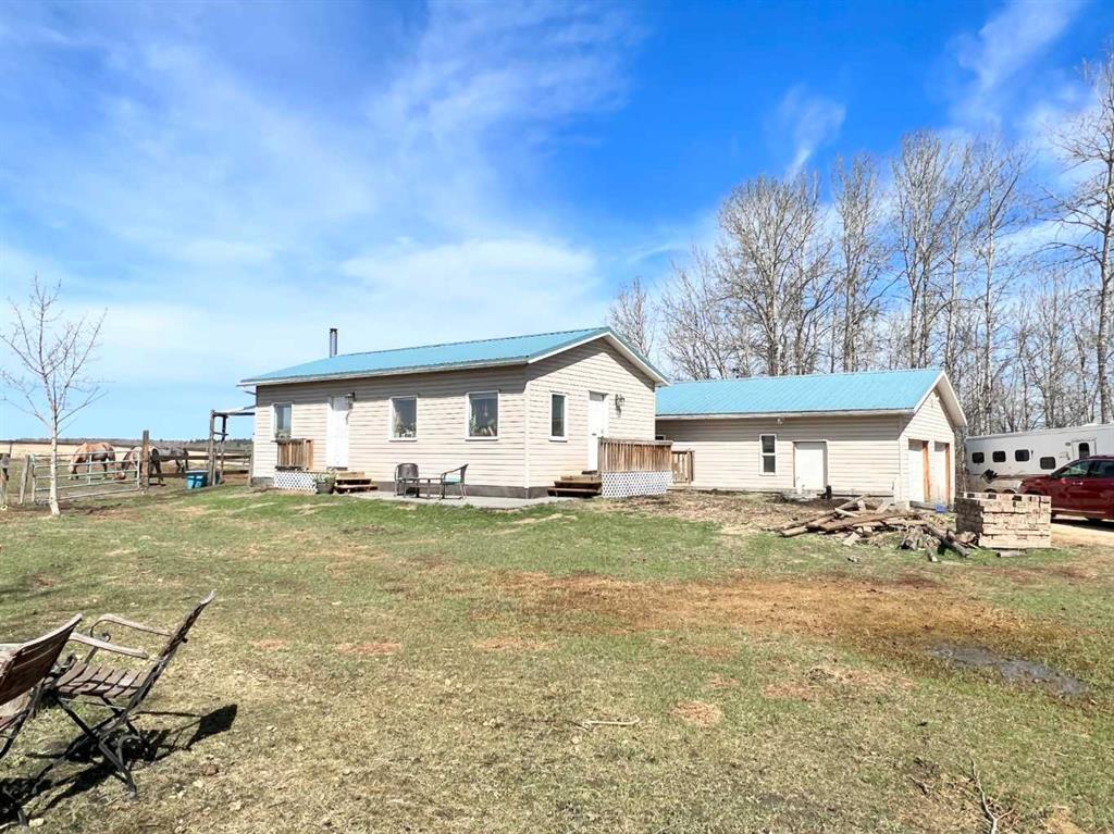 If you're looking for "I don't need a lot of space, but I just really want something that's affordable, easy to maintain, has a garage and room for my animals". This might just be the perfect fit. Home was built in 2012 on 2.99 acres. Kitchen, dining, living room and nook/office space are all wide open. Kitchen has a large island and no shortage of cupboard and prep space, plus pantry. 2 bathrooms, one combination half bathroom and laundry, and ensuite with shower. Oversized double garage is 26 ft x 36 ft, finished on the inside with concrete floor. Room for 2 vehicles plus room to spare for a work space. Low maintenance yard, property is fenced.