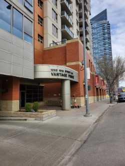 This well maintained, 1 bedroom, 1 bathroom unit is located in the desirable Vantage Pointe building, just steps from the well known Co-op Midtown Market and a quick walk or bike ride to Calgary's downtown core. Pride of ownership is evident, as this home includes upgrades you will appreciate, such as AIR CONDITIONING, a BBQ GAS LINE, and a new bathroom vanity! The open-concept kitchen has quality cabinets and plenty of counter space area. Enjoy the breathtaking views off of the west-facing balcony all year long. There is ample closet space for your wardrobe, plus room to add a dresser if you wish. A 4-piece bathroom with plenty of counter space, in-unit laundry, and a entry closet complete this unit. Residents have access to a gym, secure bike storage area, a 24-hour concierge, and a titled underground parking stall! Condo Fees include heat, water, and electricity. Take advantage of this opportunity and call to book a private showing. A convenient lifestyle awaits at Vantage Pointe.
