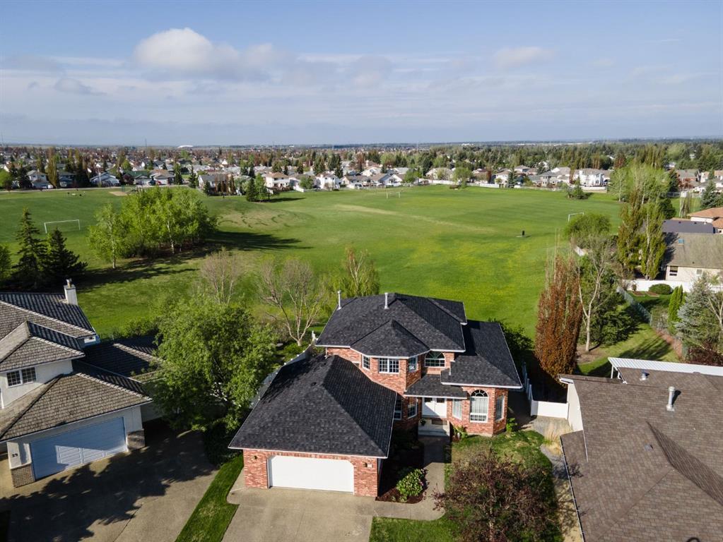 WALKOUT BACKING ON TO THE PARK! Situated in one of the best locations in the city, Atlee Close is a quiet cul-de-sac in sought after Anders Park surrounded by beautiful stately homes. Never before offered for sale, enjoy stunning views to the South and West overlooking a massive park reserve from this spacious 2 storey home. Outside, you'll find extensive landscaping including stone retaining walls and stairs walking into the low maintenance yard space, with a covered patio off the basement walkout, or sit on the upper deck and enjoy the afternoon sun. Upgrades in this home include all new plumbing (poly b removed), two brand new high efficient furnaces, and shingles in 2022. As you step inside, you're greeted by a grand entry with soaring vaulted ceilings that flow into the second floor, along with a front living and formal dining space, and large den with french doors. Beautiful site finished hardwood flows into the rear dining and kitchen space which enjoy views over the park through large windows. The renovated kitchen offers quartz counter tops with an updated backsplash, large corner pantry, and a newer Miele stove and Bosch dishwasher. A large sunken living room space features built in cabinetry with a gas fireplace, while the adjacent dining space provides access to the rear deck. A spacious 2 pce bath and large laundry room with cabinetry and a sink finish off the main floor space. Upstairs you'll find a large primary bedroom with a beautiful view over the park, double closets, a soaker tub, and a spacious ensuite with an oversized vanity, shower, and private water closet. Two spacious kids rooms share a jack and jill bathroom, and one bedroom has a large walk in closet. The basement development was completed in 2012 with beautiful engineered hardwood flooring that flows into a large rec room and family room space, accented by a modern freestanding gas fireplace and stunning cherry wood built in entertainment centre custom built by Sedona cabinetry. A crafting or office area is separated from the rec space through custom built cherry sliding screens, and there is a 4th bedroom, large finished storage space, and beautifully finished 4 pce bathroom that complete the lower level. The walkout doors off the rec room provide access to a gorgeous stone patio and covered deck so you can enjoy all of the beautiful landscaping this yard has to offer. The massive 24x31' garage is fully finished and insulated, and can fit two smaller cars back to back on one side. Do not miss your opportunity to own a home in one of Red Deer's most exclusive locations!