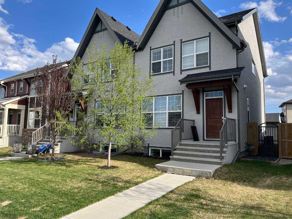 Check out this beautiful duplex in the sought after community of Mahogany! This property has 3 Bedrooms, 2.5 Baths and just under 2100 square feet of total living area. Features include all stainless-steel appliances, executive hood fan, recessed pot lights and 9-foot ceilings on the main floor which make this home feel large and luxurious. The finishes include white quartz counters in the kitchen and both bathrooms upstairs, durable yet luxurious vinyl plank flooring, tile backsplashes in the kitchen and bathrooms, tile flooring in both upstairs bathrooms and knockdown ceiling throughout. The main floor boasts an open dining, kitchen and living area with a large island dividing the space. Near the back entrance a premium upgrade featuring a built-in coat rack and storage area was added. The backyard is finished, fully fenced in, with artificial turf for ease of maintenance and black rock walkways. The large concrete stamped patio looks amazing and with the BBQ hook-up is a great place to entertain guests. The upper floor contains all the bedrooms, 2 full bathrooms, a linen closet and the laundry (dryer and washer). The main area of the basement is fully developed with only the bathroom being partially completed. A completed 2 car garage sits in the back, accessed via a paved alleyway and the home has been upgraded with Air Conditioning to keep your family cool in the hot summers. Directly across the street is a green area and small park, we are walking distance to the beach club and lake access. Nearby is a convenient store, liquor store, dentist, nail salon and pizza place. Just in time to enjoy your summer at the lake, don't miss out on this well-maintained home as it won’t last!