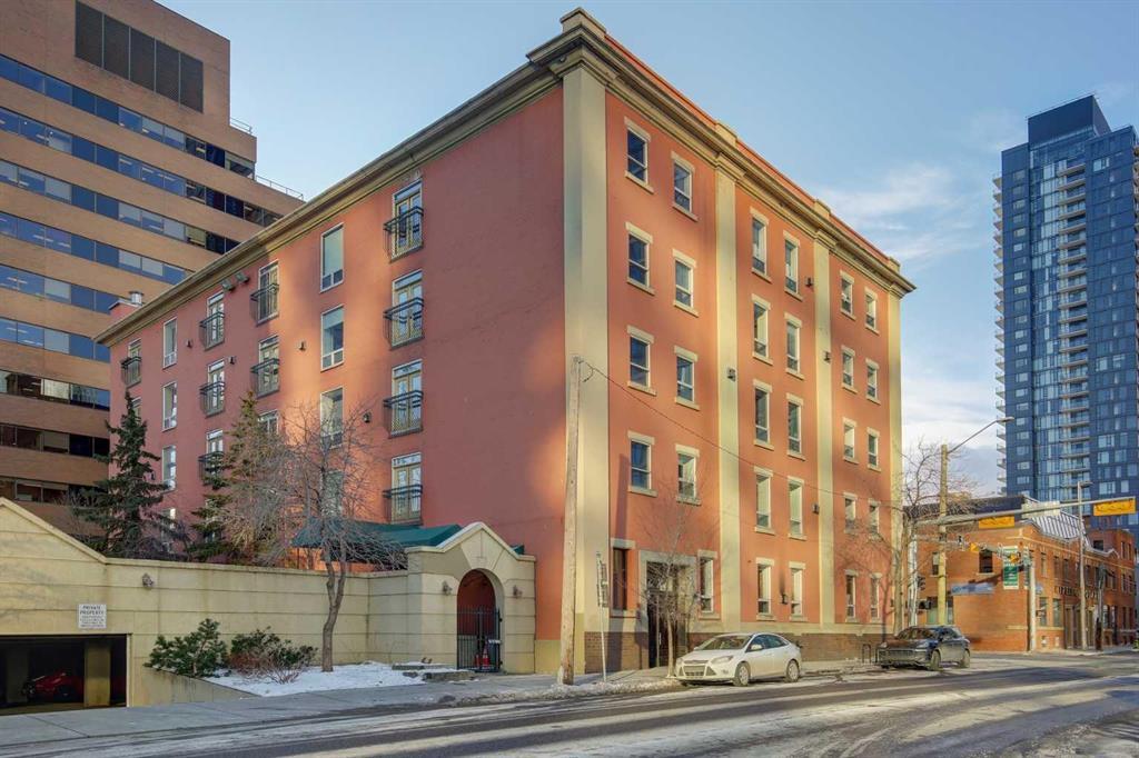 Welcome to this stunning 1200 sqft+ home with flexibility for office space, in the historic Hudson. Optimally located in the Beltline on the south side of downtown Calgary, this residence exudes excellence in modern urban living while incorporating a beautiful and seamless merging with the very best in historic architecture in Calgary. The Hudson was constructed in 1908 as a warehouse for the Hudson Bay Company and represents Calgary's first warehouse conversion to mixed residential/commercial lofts. This spacious home features 11-foot open beam fir ceilings, original exposed brick walls, gorgeous hardwood floors, Juliet balconies, and comes with 2 parking spots - one in the heated underground garage on a 99-year lease, and one titled parking spot on the surface lot to accommodate those larger vehicles. The entire unit has been freshly painted. Featuring a contained and gracious front entry with a large double closet, and an elegant powder room just off the front entry to accommodate your guests. The open floor plan with large east facing windows ensures ample light in this stylish space which has a fully developed office area complete with built-ins, just off the central living area. Stunning moveable columns separate the dining and living rooms, and the beautiful, functional kitchen with contemporary stainless appointments is open to both the generous size dining room and living room. The living room features a restored gas fireplace surround, with a built-in wall unit. The kitchen has a full-size wine/bar fridge and a stainless steel prep table/eating bar and features an impressive, large framed mirror. Unusual and highly coveted in a loft style condo, is the totally separate primary bedroom. This lovely retreat is closed off from the living area and features an elegant ensuite with soaker tub, generous shower, and free-standing cabinet. The washer and dryer are located just off the ensuite. Ample in-unit space as well as a separate locker, ensures plenty of room for storage. This home represents an unparalleled urban living/working experience in a sophisticated and refined environment, all in a carefully maintained and exquisite building. Walk to many of Calgary's finest restaurants and shops and explore all the amenities of nearby downtown Calgary. Please note, photos were taken when the owners were in residence, and the unit is currently tenant occupied.