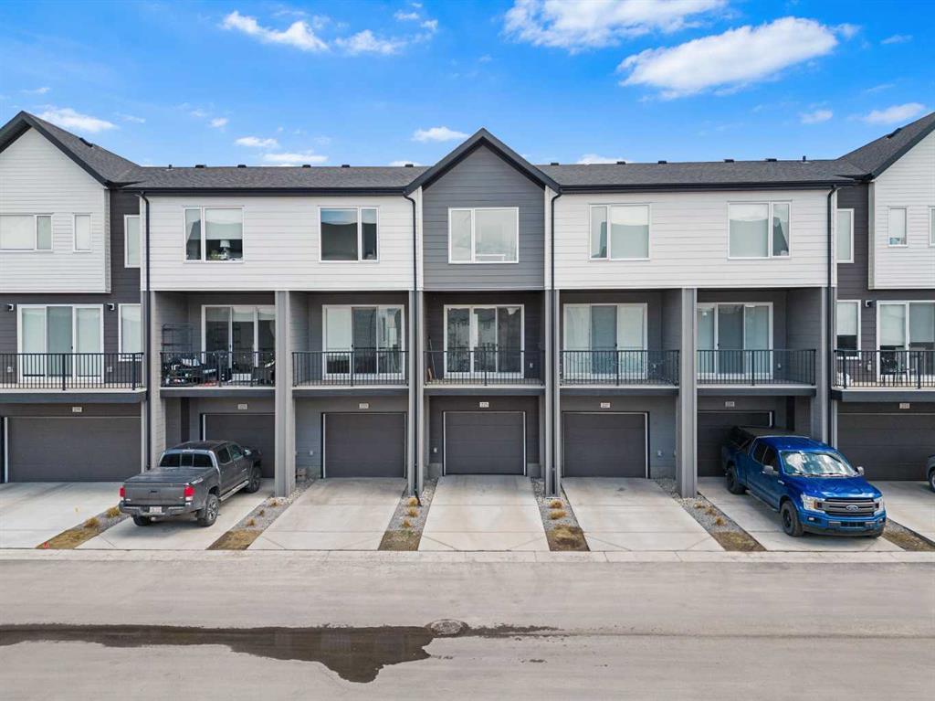 Welcome to Central by Partners in Skyview Ranch. If you're looking for an affordable first-time home or an investment opportunity, look no further. This home has fantastic features throughout, from stainless appliances to granite counters and a full ensuite washroom. The low-maintenance complex offers a turn-key lifestyle where the condo fees take care of all the exterior maintenance, snow removal, and landscaping, leaving nothing for you but to sit back and enjoy this unit's life. There is ample visitor parking right out the garage door of this unit, along with an extra parking pad in front of the single attached garage. This complex sits adjacent to green space and pond with walking paths if you want to maintain an active lifestyle. On the other side of the green space and within easy walking distance are all the amenities you'll need to satisfy your fitness, culinary, and medical needs. The neighborhood offers multiple schools if you're raising children in the area, including but not limited to Prairie Sky School (K-9), Saddle Ridge School (K-4), Peter Lougheed (5-9), and Nelson Mandala High School. Please check out the virtual tours for this property and call your favorite agent for your exclusive private viewing. landscaping and fencing to be completed by the builder.