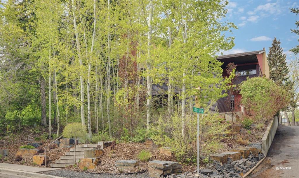 Extraordinary contemporary home on the slopes of Mount Royal. Designed by modernist masters Sturgess Architecture with a completely site-specific approach. Positioned well-above the front Street to take full advantage of the City skyline and treetop views and to create a seamless and level connection to the rear yard. An Aspen glade in the front yard creates lovely privacy. The interior showcases incredible scale with 19’ vaulted ceilings and a layout that is open front to back for a remarkable span of 55’. Fantastic construction quality including steel structure to allow for removal of columns and interior supporting walls. The gallery-like scale allows you entertain groups of 50+ but works equally well for curling up on your own by the fireplace. Huge banks of windows, 10’ and 12’ high, capture the views and produce incredible light quality. The living room has a dramatic soaring fireplace with rolled-steel details and access to the wraparound front deck. The expansive dining space will hold any size table. Sleek and contemporary kitchen with integrated appliances (Sub-zero, Wolf and Miele), large island and a linear counter that draws the eye toward the rear yard. A banquette for casual dining has garden views and sliding door to the rear yard. The upper level is just 8 steps above the main. It holds an office (city views), a den (bookshelves and rear deck access) and a beautiful Primary suite that includes a large bedroom with corner windows overlooking the garden, access to the rear deck, walk-in closet with rough-in for laundry and a beautiful ensuite bath with glass-topped double vanity, soaking tub and glass walk-in shower. The entry level holds a large foyer, discreet powder room and a closet-storage hallway leading to the double attached garage. The fully developed lower level has a large family room, 2 bedrooms, (great for teens who want some independence), full bath with shower, wine room and laundry room. Exceptional infrastructure includes hydronic heating on the hard-surface floors (including the garage). The double garage is accessed off a paved alleyway and has a large interior storage-hobby room (also an exterior storage room). There is guest parking on the garage apron and an easy, barrier-free walk to the front door. The surprisingly large and private rear yard is beautifully landscaped with a terrace, perimeter beds, lots of perennials and a sprinkler system. This unique and special home will suit a number of buyer profiles but is ideal for empty nesters or singles. This location offers an easy walk down to all the restaurants, shopping and excitement of 17th Avenue. In bounds for top schools including Western Canada High School.