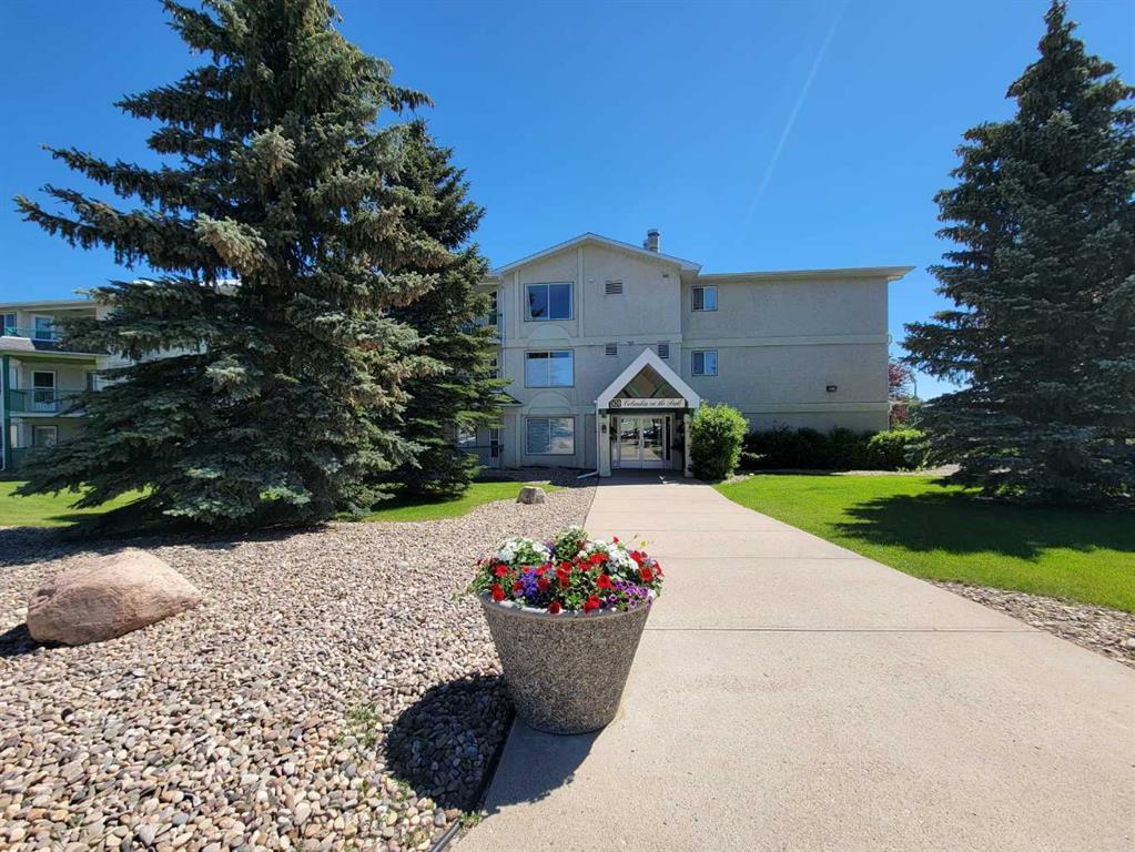 The ever popular Columbia on the Park! This main floor unit is also at the end of the hallway so you only share 1 common wall! Featuring 2 bedrooms, in-suite laundry, a spacious pantry and a patio that has access from the primary suite! Including a 4 piece bathroom, walk-in closet in your well sized primary room, warm vinyl plank flooring in the kitchen and plentiful natural light! The building itself also hosts a sauna, social room and gym!