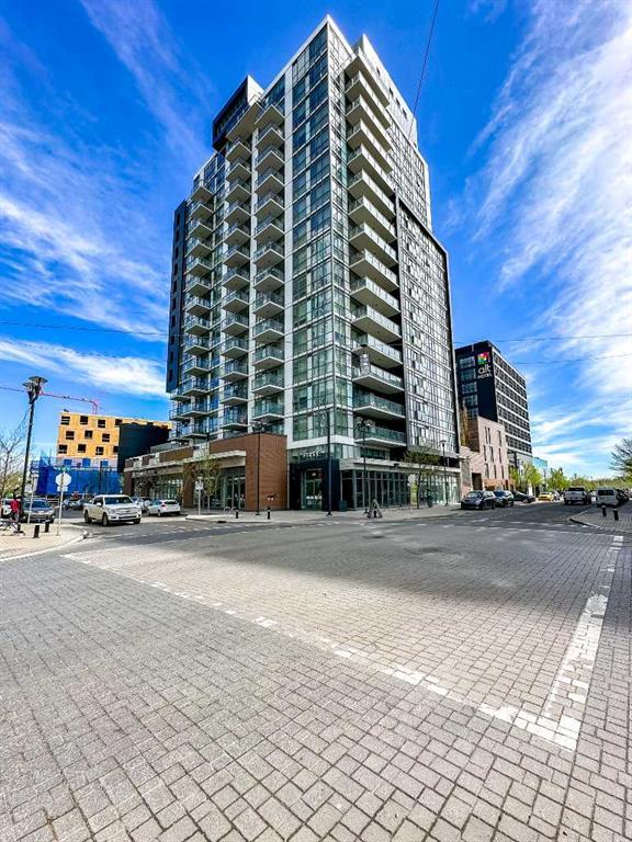 Incredible value in this trendy, one bedroom condo, perfectly located in the East Village! This great unit offers a bright, open plan, 9 ft. ceilings, contemporary finishes throughout and central air-conditioning. Functional kitchen with moveable island, quartz countertops and stainless appliances. Master bedroom complete with walk-in closet and 3 piece ensuite bath. Enjoy a spacious east facing balcony with gas barbeque hook-up, convenient in-suite laundry, a designated storage locker and one titled, underground parking stall. Wonderful building amenities include a roof top patio with spectacular views, entertainment/party room, guest suite, exercise room and yoga studio and concierge. Just steps to river pathways, restaurants and shops. Live your best lifestyle in this vibrant community! Welcome home!