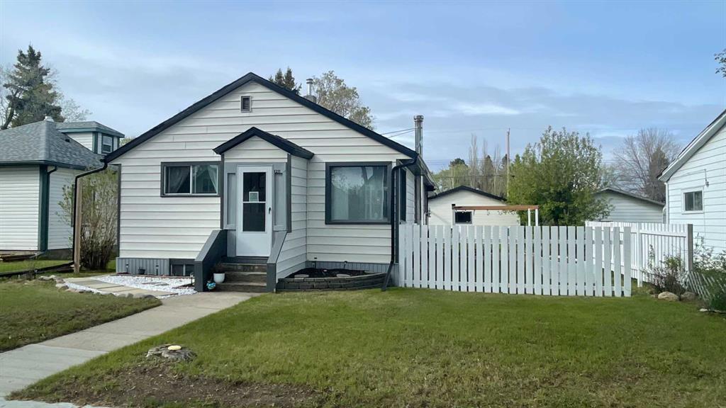 Check out this cute 'n charming bungalow c/w heated double car garage and located just 1 block from the Blessed Sacrament school and a handy stroll to downtown Wainwright! A bonus feature which will provide hours of enjoyment is the rear covered deck and also stone patio area if you'd like to enjoy a quaint marshmallow roast (Umm - scrap that idea if there's a fire ban!) Step inside the back door and you'll enter into a modern, natural light friendly kitchen with updated cabinets and all of your necessary appliances! You'll also notice updated lighting throughout the home! Continue through and you'll pass through a spacious dining room and into the living room area. There is also 2 generous bedrooms and an updated 4 pc. bath on the main floor. Wander downstairs to find brand new flooring throughout, plus a new 3 pc. bath, spacious family room, an additional 2 bedrooms plus laundry and utility area. Notable updates include: New vinyl plank basement flooring and trim ('24), New upstairs bathroom vanity ('24), New kitchen flooring ('23), New main water shut-off valve and septic cleanout ('23), Backwater valve installed ('23), Sump & drain added ('23), Eavestrough and soffit ('22), New dishwasher ('22), New lighting throughout, New 3 pc. basement bath, New hot water tank ('21), House & garage shingles ('21), Landscaping & driveway gravel ('21). Don't miss the 3D virtual tour for a 360 peek at this property! Book your showing today with your favourite realtor!