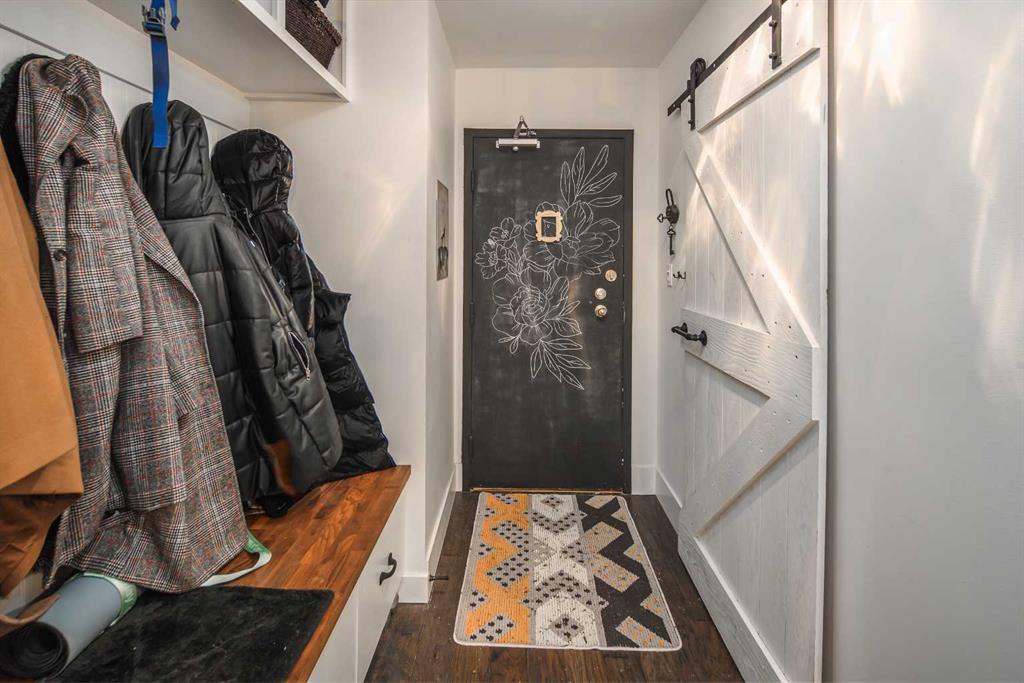 Prepare to be amazed by this impeccably renovated two-bedroom unit, basking in southwestern light. This residence boasts a bespoke entryway adorned with a custom bench and barn door, leading into an expansive storage and laundry area complete with modern front-load washer and dryer. Throughout the home, you'll find exquisite engineered hardwood flooring and flawlessly flattened ceilings. Step into the heart of this unique residence where a generous open concept living space awaits. The kitchen is a culinary enthusiast's dream, featuring an expansive island with a sleek counter-depth refrigerator, built-in dishwasher with cleverly concealed panels, a double oven, and ample cabinet and drawer storage, all crowned with beautiful butcher block countertops. Adding a touch of character, the open shelving crafted from century-old reclaimed barn wood offers abundant space for showcasing dishes, cookware, and small appliances, or perhaps a tempting array of sweet treats in charming candy jars! This home not only shows pride of ownership, but also offers an ideal setting for hosting gatherings with friends and family. Nestled on a tranquil tree-lined street adjacent to a convenient bike path, yet mere blocks away from the vibrant energy of 17th Avenue with its array of restaurants, bars, and boutiques, it could not be in a more contemporary location. Convenient parking stall #3 situated near the front entrance completes this exceptional offering.