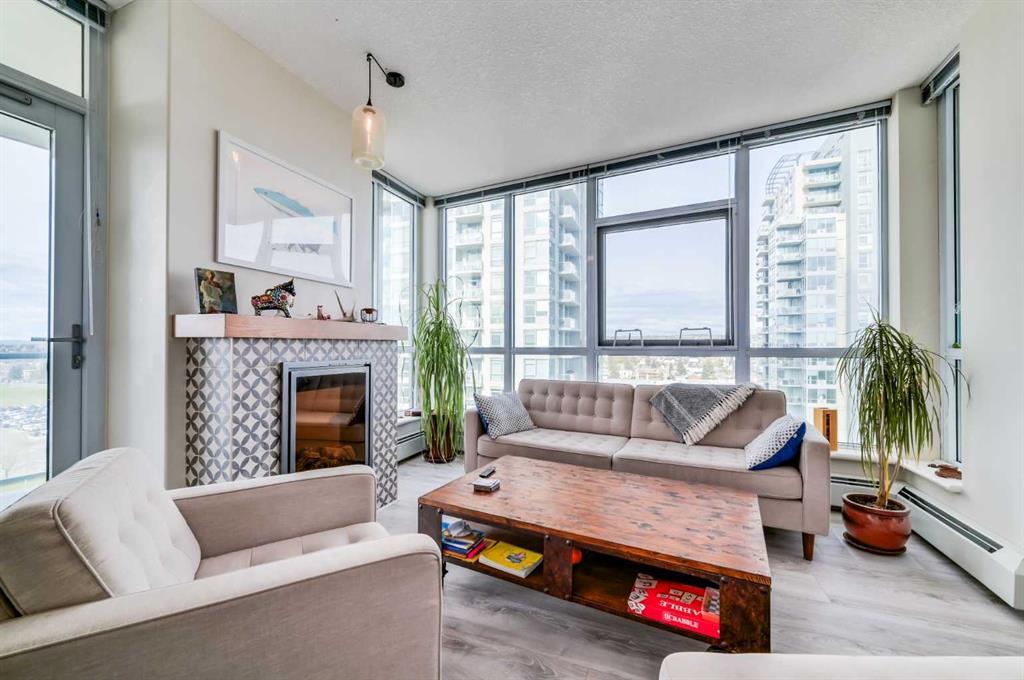 *** PRICE IMPROVEMENT! *** BACK TO MARKET DUE TO BUYER UNABLE TO OBTAIN FINANCING*** Welcome home to your CORNER UNIT at Ovation, the newest tower in the complex where your lifestyle meets convenience and TONS OF AMENITIES: Indoor Pool, Hot Tub, Fitness Centre, Owner’s Lounge w/ Games Room to name a few! When you arrive home and park in your TITLED HEATED PARKING STALL, you’ll be comforted by the 24 HR SECURITY, separately gated VISITOR PARKING, and easy access to all 3 buildings as well as all the amenities using a +15 walkway system (ideal for Calgary’s cold winters). When you reach the 12th floor and open your door, you’re greeted by tons of natural light through the FLOOR TO CEILING WINDOWS with sunny SOUTH and WEST EXPOSURES, but glad that CENTRAL A/C is on today. You take a moment to appreciate the stylish patterned tile surround framing your ELECTRIC FIREPLACE and easy to clean LUXURY VINYL PLANK FLOORING. Walking out onto your expansive balcony to enjoy the summer breeze, you marvel at the majestic MOUNTAIN VIEWS, one of the many things you love about coming home! You think to yourself, should you prepare a meal at home in your OPEN CONCEPT kitchen/living/dining fully equipped with GAS STOVE and GRANITE COUNTERS, or is it easier to head to WESTBROOK MALL (2 mins), or even 17th AVE SW (3 mins)? You silently thank yourself for choosing this location, because even your commute to Downtown is a short 5 min drive or quick walk over to the WESTBROOK LRT! An active lifestyle is important for you and your furry friend – immerse yourself in nature along BOW RIVER WALKING/BIKING PATHS (10 min walk), Edworthy Park (7 mins), or show off your skills to your friends with so much practice at SHAGGANAPPI GOLF COURSE (3 mins). What are you waiting for… make this vision a reality today!