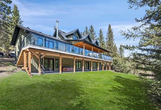 This simply beautiful acreage with 3,800sf fully developed is nestled on almost 6.5 acres ithe beautiful Rural Foothills, south of Bragg Creek & west of Millarville, only only 30 mins to Calgary. It offers a truly unique and serene living experience, situated on a private forested lot with the soothing sound of a babbling creek. This exclusive luxury home has been professionally extended and renovated to the highest standards. The attention to detail is evident from the moment you enter the property, with a grand two-story porch made of gorgeous cedar wood welcoming you. The interior of the home is equally impressive, with slate tile flooring, hand-scraped hickory hardwood floors, and a beautifully designed kitchen with high-end stainless steel appliances, stone countertops & backsplash, private butler’s pantry and large sleek island. The spacious living room features a custom-built wood-burning fireplace with a mantle recycled from an old grain elevator, adding a touch of history and character to the space. The master retreat is a luxurious haven with large windows and French doors leading to a duradeck that offers unobstructed views of the surrounding forest. The ensuite bathroom is a spa-like oasis with slate tiling, a stand-alone bathtub, and a custom shower. The upper level of the home includes a loft sitting room, two bedrooms and full bathroom. The basement features in-floor heating in the entertaining/family media area. Plus 2 additional bedrooms, one of which has an ensuite bathroom, walk-in closet and French doors to the patio. Outside, the expansive deck and patio provide ample space for outdoor entertaining, and the workshop/garage with a carriage suite (illegal) offers the potential for additional income through Airbnb rentals. The property also includes a horse shelter for your four legged friends, and a sturdy rustic wooden bridge across the creek, allowing you to explore and enjoy your beautiful acreage to its fullest. This acreage is a true retreat for those seeking a peaceful and luxurious escape in the foothills near Kananaskis.