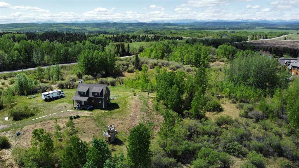 Escape the hustle and bustle of Calgary with your very own dream retreat nestled on 7.44 acres of pristine land. This property boasts breathtaking views of rocky mountains on one side and an expansive 8.5-acre pond on the other, offering you serene waterfront living. Built in 2013, the boutique custom-designed residence features 3 bedrooms, 2 and a half baths. Main floor is cozy and also features the primary bedroom with walkin closet and full ensuite. Basement is unfinished and has large windows- so many options for future development. Despite its modest square footage, every inch of this home is maximized for comfort and functionality. Conveniently located southwest of Calgary, in Foothills County , this property is just a 15 minute drive on paved roads to all the big city conveniences such as major shopping centers like Walmart, Home Depot, and Costco, as well as outdoor recreational facilities such as Priddis Green Golf Club, Bragg Creek and Kananaskis. Embrace a lifestyle envied by all, where you can enjoy the tranquility of nature without being isolated from city amenities. Spend summer enjoying the variety of birds that the pond attracts, and winter snowshoeing or cross-country skiing around your own private trails. Enjoy harvesting Boletus mushrooms and hand-picked berries. The well-built chicken coop ensures a daily supply of organic eggs, while wildlife sightings of deer, moose, various waterfowl, and the soothing sounds of frogs singing add to the idyllic ambiance. Unlock the full potential of this property with an extension to the existing structure. Plans are included to add over 2500 SF of living space and a triple garage.