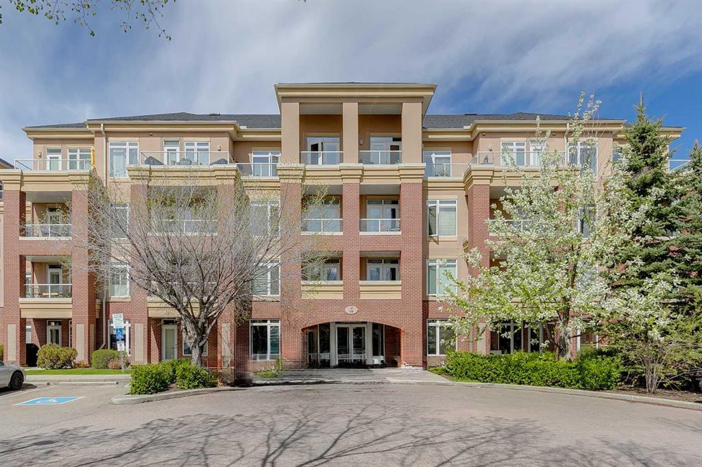 Stunning top-floor, 2-bed corner unit in Copperwood Condos ! Unique layout with two balconies and views of the Shaganappi Point Golf Course, you’ll be taken by the brilliant configuration and condition of this apartment. The spacious kitchen greets you with classic granite countertops over a curved eat-up bar and stainless appliances that highlight the dark maple cabinets. The living room with a gas fireplace is a treat to relax in, with treetop views to the east. The light-filled corner dining area overlooks the south balcony, a great spot to catch some rays year-round. The primary bedroom and walk-in closet are connected to the luxurious bath with a tiled walk-in shower. The second bedroom features an additional door to the larger east patio, large enough for a lounge sofa and with a natural gas connection for a heater or BBQ. The Copperwood complex has one of the most complete gyms available, located in the amenity building. The single underground (titled) parking stall is conveniently located close to both the parking entrance and the elevator. A separate storage room makes off-season storage a breeze. Call today!