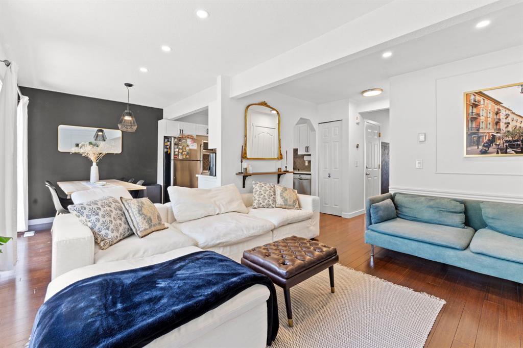 This charming townhome in Airdrie presents an incredible opportunity to own a meticulously maintained property with an abundance of character in a peaceful gated community. With 4 bedrooms, 2.5 bathrooms, a fully finished basement, and a front-drive attached garage, this home offers both convenience and comfort. Moreover, the numerous upgrades such as hardwood floors, new pot lights, updated light switches, and stunning light fixtures add a touch of elegance.As you walk through the doors, you are greeted with an open concept living area boasting a gas fireplace and abundance of natural light. The kitchen has been tastefully renovated with brand new quartz countertops, faucet, oversized sink, and cabinet handles. Don’t forget the sliding doors beside the dining area leading you to your own private deck and green space bringing in even more light. The main floor's open floor plan, including a neatly tucked away powder room, makes this space great for gathering with family and friends. Upstairs you will find 3 bedrooms and a flex space including a built-in desk perfect for a home office. The Primary ensuite features a newly updated bathtub, sliding door, tiles on the back wall (without grouting for easy clean), quartz countertops and a new faucet! The large sunken bedroom with vaulted ceilings and a large arching window is truly the centre of attention. The basement includes a 4th bedroom, full bathroom, and a laundry area. This property is located within a 4 minute drive to Superstore, Dollarama, Fit4less gym and many other amenities, as well as, super quick access to Deerfoot trail for your commute to Calgary! Don’t miss your chance to view this amazing property packed with upgrades. Book a viewing today!