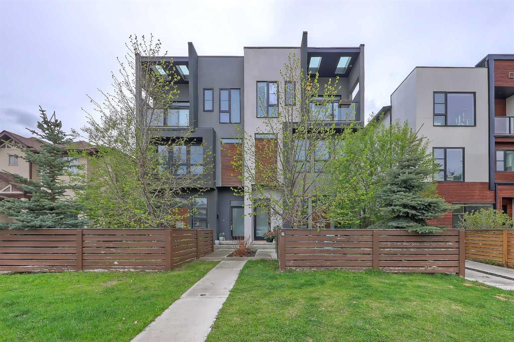 You can’t beat this location in MONTGOMERY with this luxury 3-storey 4-BED, 4.5-BATH TOWNHOME by Red Tree Custom Homes w/ FULLY DEVELOPED BASEMENT! Across the street from Shouldice Park, the Bow River, and the Shouldice Aquatic Centre, with local favourites within walking distance along Bowness Rd, including NOtaBLE, Abbey’s Creations, and Angel’s Café! The Alberta Children’s Hospital, University of Calgary, Foothills Medical Centre, and Market Mall are all under 8 minutes away, and Foundations for the Future Charter School and Terrace Road School are a 15 and 8-minute walk away. It’s an ideal location for any young couple looking to live in the area who don’t want to sacrifice luxury or convenience! Spread out across four levels of fully developed living space, this upgraded home includes 3 upper bedrooms (each with private ensuites), a single detached garage, an open concept layout, and upgraded finishings throughout! The main floor enjoys a full wall of transom windows, flooding the home with natural light, with high ceilings and engineered WALNUT HARDWOOD flooring complimenting the open space. The front living room centres on a stunning gas fireplace with a tiled surround and beautifully framed by windows! A decorative tray ceiling with designer light distinguishes the dining room from the rest of the floor, ideal for entertaining, while the clean and modern kitchen overlooks the space welcoming the chefs in your family! A long island with quartz counter enjoys bar seating, a dual undermount stainless steel sink, and lots of storage. The flat panel cabinetry sits alongside a stylish tile backsplash, with designer pendant lightings bringing it all together. The stainless-steel appliance package includes a fridge/freezer, a gas range, a dishwasher, and a built-in microwave on the island. Upstairs, two junior suites with private 4-pc ensuites with fully tiled tub/shower combos await, with a linen closet and laundry area. The primary suite features more transom windows, a spacious walk-in closet w/ built-in shelving, a PRIVATE BALCONY, and a 5-pc ensuite w/ heated tile floor, soaker tub, dual sinks, quartz counter, and large shower w/ full-height tile surround and rain shower head. The fully developed basement features a large recreation area, a hobby room, and an additional 4-pc bathroom, expanding your living space in this already incredible townhome! Living in Montgomery is unlike any other, w/ easy access to Bowness & all its shops & amenities, WinSport, Edworthy Park, plus all the restaurants & shops along 16th Ave! Highway 1 is just a stone’s throw away, too, giving you complete access to the entire city for easy commuting and direct access to the mountains. Drive around the neighbourhood, stop into an open house, or book your private viewing to see your new home for yourself – you will love what you see!
