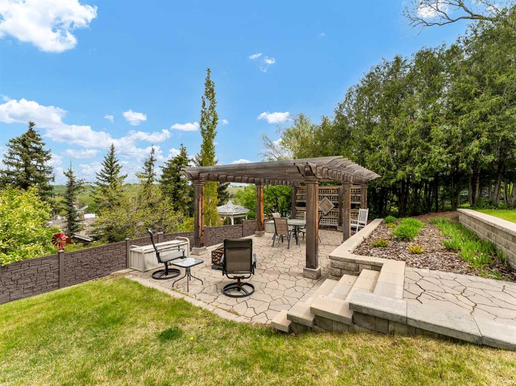 Welcome to your peaceful sanctuary, a stunning bungalow perched atop a coveted view lot with no neighbors behind, conveniently located within walking distance of the hospital and the fantastic downtown amenities. This exceptional home offers more than just a residence; it provides a retreat of tranquility and elegance. Upon entering, you’ll be captivated by the open-concept design, with gorgeous hardwood floors and natural slate tile flowing seamlessly throughout the main living space. Large windows frame breathtaking panoramic views and flood the space with natural light. The spacious living room invites you to step directly into the enclosed sunroom, extending your living space into the outdoors—perfect for soaking in the relaxing scenic views. The kitchen is sure to impress the family chef and meet all your culinary needs, featuring granite countertops, a large island that provides abundant prep and counter space, ample cabinetry, and modern stainless steel appliances. The spacious dining area is perfect for family meals and entertaining guests. The main floor also includes two inviting bedrooms, two bathrooms, and main floor laundry. The primary suite boasts abundant closet space along with a spa-like ensuite with dual sinks and a huge walk-in slate shower. The fully developed basement is a versatile haven, offering a cozy family room complete with a gas fireplace that opens onto the walk-out patio—ideal for hosting gatherings. The space includes a spacious bedroom and full bathroom, storage areas, and an additional living space perfect for hobbies, a home gym, or a recreation area. Step outside to your private oasis, situated on an expansive lot. The beautifully landscaped yard features mature trees, plenty of grass space for family activities, and a delightful pergola-covered patio that provides a serene backdrop for outdoor relaxation and gatherings. The attached 13X37 tandem-style garage offers parking for two and ample storage. This remarkable bungalow combines the best of nature and modern living, offering a unique opportunity to embrace a serene and comfortable lifestyle. Wake up to the beauty of the outdoors and enjoy the elegance of a well-designed interior. Contact an agent today to schedule your personal tour and experience firsthand the tranquility and sophistication of this stunning property.