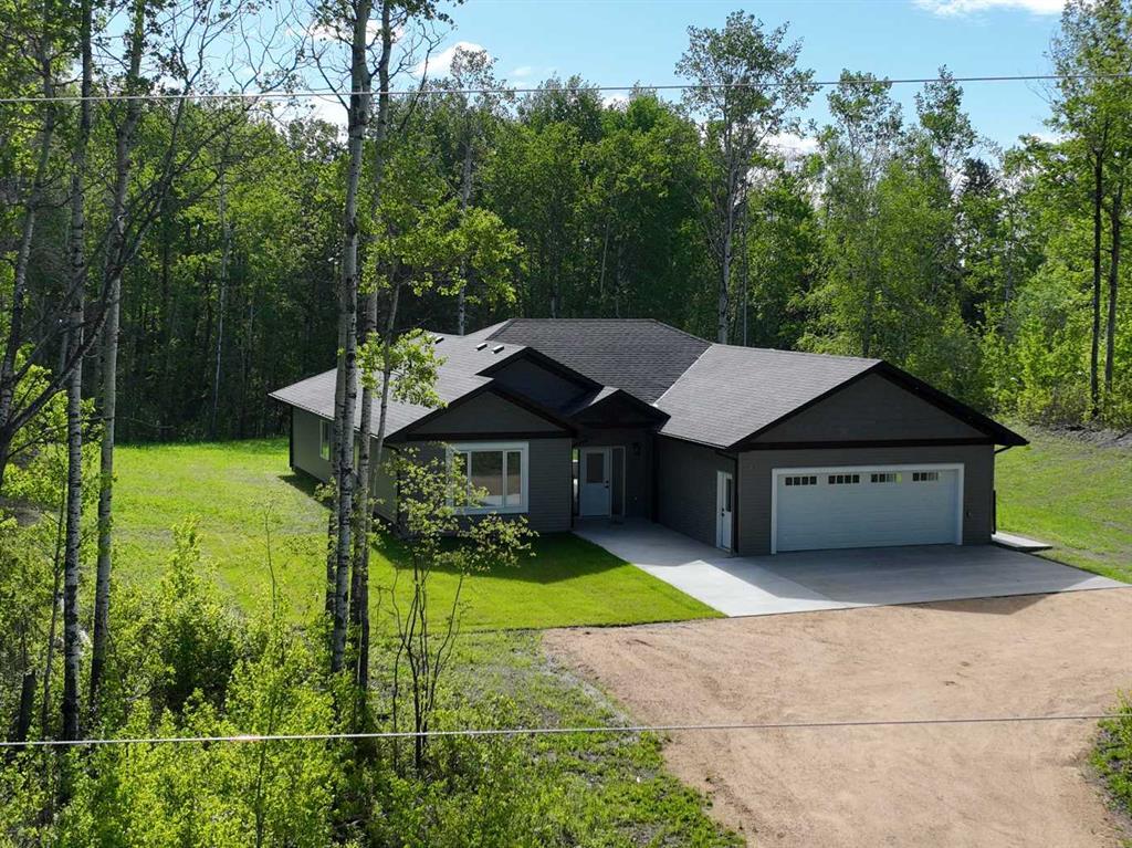 This is your opportunity to own a pristine, BRAND NEW home situated on a spacious 2.5 acre lot just a short distance from town in the brand new subdivision in Copper Ridge Estates. This exceptional home has been constructed with the utmost care and attention to detail, showcasing impeccable taste and a show home quality finish. Just over 2000 sq ft of living space all on ONE LEVEL, this property is sure to leave a lasting impression. Featuring 4 bedrooms, 2 1/2 bathrooms, this home has been carefully planned with 9 ft ceilings, an inviting open concept kitchen and family room layout. The luxurious master bedroom ensuite includes double vanities, a custom tiled shower, and a MASSIVE walk in closet. The family room is LIGHT AND BRIGHT, creating a warm and welcoming atmosphere, while offerings stunning views of the backyard. The kitchen is complete with custom built cabinetry, elegant white quartz countertops , and sleek black fixtures and hardware. Additionally, there is a 2 piece washroom located next to the mudroom with access to the double attached garage. The home features ICF construction up to the roof, a hydronic radiant floor, and a heat recovery ventilator for maximum efficiency. Outside, the yard has been beautifully landscaped with a concrete patio and sidewalks, creating the perfect oasis.