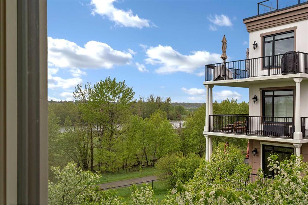 Welcome home to this executive and luxury corner unit in the beautiful Champagne building with unobstructed views of the river! Upon entering you are greeted with an elegant and spacious front foyer, an abundance of natural light, wide plank hardwood flooring, coffered ceilings, custom millwork, and quality workmanship throughout. The gourmet kitchen features full height cabinets, large central island with breakfast bar, granite counter tops, pull out drawers, stainless-steel appliances with gas range and added desk area for the perfect workstation. The generous sized living room boasts large windows with amazing views of the river, pathway and park. The dining area is spacious and can accommodate a large table for gatherings and includes the patio door to your west facing wrap around balcony with gas line for your BBQ. The primary retreat is a generous size and includes coffered ceilings, Juliet balcony, walk-in closet and “spa like” ensuite with soaker tub, shower, double vanity and plenty of storage. The 2nd bedroom, the main bathroom and laundry complete this beautiful condo. Other features include: a large underground parking stall-right next to the elevator, large storage locker & central air conditioning. The Champagne is a private, secure concrete building that also has a car wash bay and ample bike storage. Located right on the Bow River Pathway System, a short walk to the Sue Higgins off leash Dog Park, Carburn Park, the YMCA and the Quarry Park Market (shops and restaurants). This unit shows like new and must be seen to be appreciated!