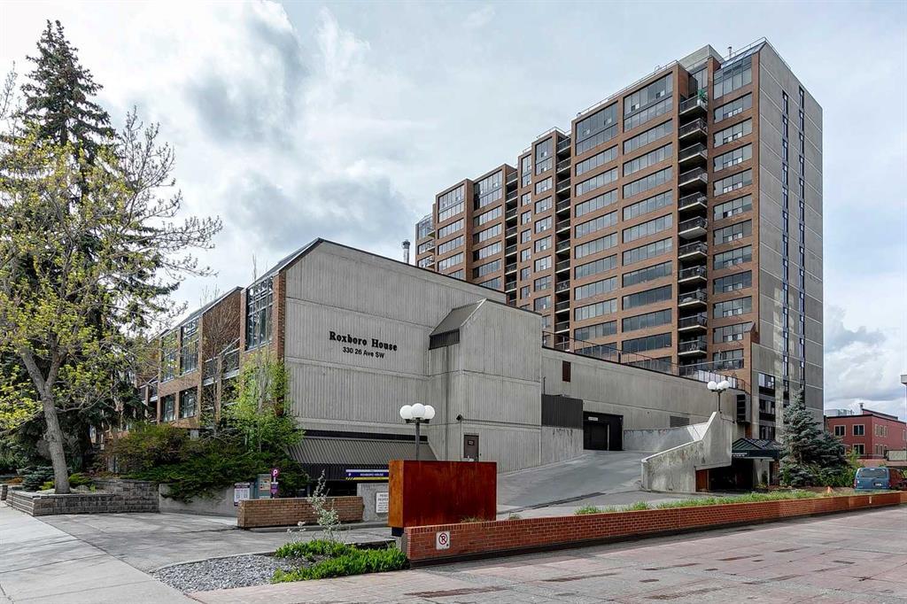 Stunning views of the Downtown through to the Stampede Grounds from this 1479.45 square foot 2-BEDROOM + DEN. Excellent layout + spacious rooms throughout. The large living + dining rooms with expansive windows to enjoy the views + opens to the den. Efficient kitchen with with stainless steel appliances, ample cabinet + counter space. Roomy primary bedroom with full ensuite, a second bedroom and full bath, in-suite laundry. Unit comes with one indoor parking and separate storage locker. Many amenities include 24/7 security staff, intercom entry, two elevators, indoor pool with sauna + hot tub, two party rooms, large landscaped private outdoor patio, guest suite, workshop + an exercise room. A wonderful walkable lifestyle awaits you in Roxboro House with The Elbow River + pathway system just across the street, coffee shops, restaurants + grocery shopping also steps away. Very close to downtown, the Glencoe Club + The Talisman Center.