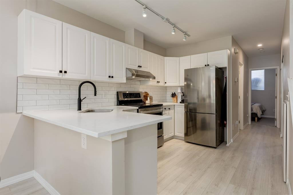 OPEN HOUSE SUNDAY JUNE 9 FROM 12-2 PM | 2-BED | 2 FULL BATHS | 2-STOREY TOWNHOUSE | OVER 1,000 DEVELOPED SQFT | DETACHED GARAGE | GAS FIREPLACE | RENOVATED | VIBRANT DOWNTOWN | Welcome to St. James, a Victorian-style building that is beautifully tucked away on a QUIET STREET in the Beltline. This 2-bed and 2-FULL BATH TOWNHOME features an incredibly updated kitchen and bath with 1000+ sq ft of total living space. Pride of ownership evident throughout. Highlights in the freshly updated kitchen are the Haristone Caprice QUARTZ COUNTERTOPS with a timeless subway tile backsplash, undermount sink, and on-trend black accent faucet and cabinet pulls. You will find the matching countertop and backsplash in the updated 4-piece bath, along with a stylish black honeycomb tile. Add in new LVP flooring and updated lighting – designer choices throughout! There is 1 bed and 1 full bath on both levels in this townhome, as well as separate entrances - an ideal layout for roommates and out of town guests. Upper level bedroom/den can also double as an office. Shared garage for parking and extra storage. Out of Calgary’s 200+ neighbourhoods, the Beltline boasts the #1 Walk Score in the city! Incredible value at this price point to find a RENOVATED 2 BED/2 FULL BATH in the heart of the city that is on this quiet of a street. With only 5% down at today's interest rates, your mortgage payments could be around $2,200 per month. What are you paying in rent? Take advantage of the current environment and get into the rising townhouse market today. Pet are allowed with Board Approval.