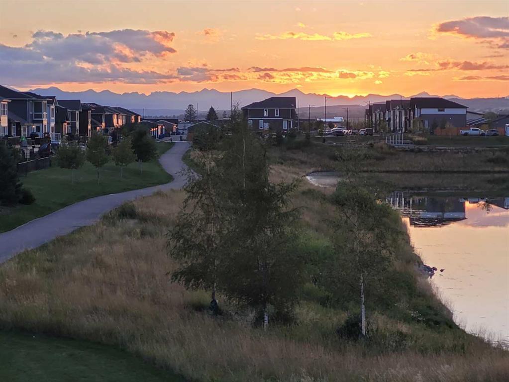If you are looking for mountain views, walking paths and a tranquil pond to reflect the beautiful Alberta Foothills sunsets, then welcome to this beautiful 3 bedroom walkout bungalow. Walking in you will notice the luxury wide plank vinyl flooring, neutral designer colors, and vaulted ceilings. This home has lots of upgrades, including lots of triple paned windows to take advantage of