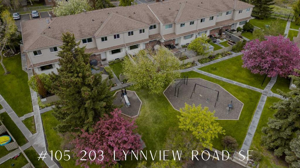 STEPS TO BOW RIVER PATHWAYS | PET-FRIENDLY COMPLEX | FULLY DEVELOPED BASEMENT + FENCED YARD | Welcome home to unit 105 at Riverside Gate in Lynnview; your ideal townhome awaits. This hidden gem of an area is just what you have been waiting for and at an incredibly affordable price point. Rarely do you find a townhome with a full-sized, fenced front yard onto a park in such a fantastic location and just 10 minutes from downtown. The main level features updates throughout, most notably the sizable kitchen with stainless steel appliances, epoxy counters, ample cabinet space, and a large dining area overlooking the yard through the large window. You will also find an oversized living area with built-in speakers, perfect for any growing family to enjoy a Flames game or movie night with kids, and a 2pc powder room. Upstairs is complete with a large primary bedroom with ample closet space, two additional bedrooms, and an updated 4pc bathroom. The fully developed basement features a large family room with custom wall detailing, a large window and a den space that makes an ideal home office, crafts room, or home gym. Not to be missed is the massive amount of storage in the laundry area, something you rarely find in a townhome. The fenced front yard is perfect for any pet owner and features a large shed, BBQ area, and raised wood deck, an ideal place to enjoy drinks with friends or have a family get-together around the BBQ this summer. Some other recent updates over the years include a Hot Water tank (2023), Electrical Panel (2020), Fridge (2019), Dishwasher (2021) and Microwave (2021), along with a newer Washer and Dryer. This home is located just steps from Lynnwood Ridge Park, The Bow River, Beaver Dam Flats & the pathway system along the ridge, close to shopping, schools and parks and just a 2-minute commute to Deerfoot. Book your private showing today; this one will not last long!