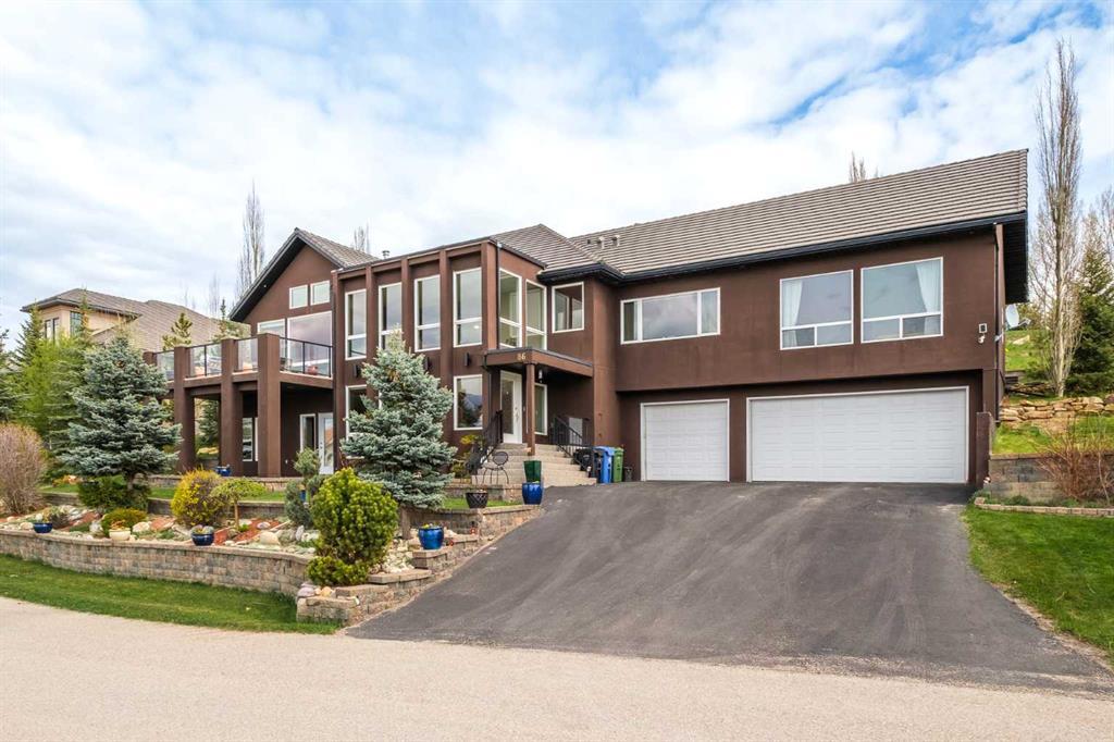 Discover the perfect balance of urban convenience and serene, country-style living in this stunning hilltop bungalow. With sweeping views of the Rocky Mountains and located near top-rated schools like Webber Academy and Rundle College, this residence offers an ideal setting for those seeking tranquility without sacrificing proximity to city amenities. Enjoy easy access to West Hills Shopping Centre, Bragg Creek, Kananaskis, and downtown from this prime location. Nestled in the peaceful gated community of The Slopes, this home captivates with its picturesque setting and elegant design, emphasizing unobstructed mountain views from both levels. The southwest-facing orientation ensures breathtaking sunsets, adding a natural spectacle to your daily routine. This property has been designed with every square foot taking the views into consideration, making it an interior designers dream, spanning nearly 4500 sq.ft. of living space, which includes a fully developed walkout basement that mirrors the beauty and spaciousness of the upper floors. The heart of the home features a chef’s kitchen that includes an industrial gas stove and slate backsplash. Maple cabinets and a large island with a breakfast bar open onto a generous breakfast nook, leading to an oversized backyard, perfect for relaxing and entertaining. The living areas impress with a front sunken living room that highlights a two-sided fireplace shared with the formal dining room, creating a warm, inviting atmosphere. Vaulted ceilings and oversized windows flood the space with natural light and maximize the majestic mountain views, ensuring every room feels like a retreat. The primary bedroom is a private sanctuary with wall-to-wall windows and a luxurious 5-piece ensuite, offering a spa-like experience. A strategically placed office boasts extensive built-ins and panoramic views, providing an enviable workspace. Additional living spaces include an expansive rec room, a second family room complete with fireplace, a media/theatre room for movie nights, and two additional bedrooms in the basement, all designed to take full advantage of the scenic hillside location. Completing this magnificent home is an oversized triple garage with ample storage for all your needs and a large laundry room designed to accommodate families of any size. Enjoy the stunning southwest-facing deck for memorable summer sunsets, making this home not just a place to live, but a place to thrive.